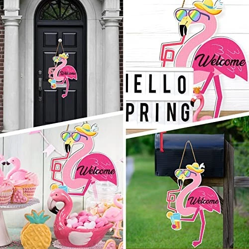 Return Policy Fast Delivery Trusted seller Flamingo Welcome Sign Wood Front Door Decor Summer Hanging Rustic Decor for Farmhouse Home Wall Porch Garden Holiday Decorations Supplies, 15 x 10 Inch Product Description Funny Flamingo Sign: this flamingo door hanger is designed with a funny flamingo who is wearing a red scarf and a hat, paired with bright colors and artistic [Welcome] to add more fun and relaxing to your summer home Size Information: the flamingo door sign measures approx. 38 x 26 x 0.5 cm/ 15 x 10 x 0.2 inches, and the large size is easy to attract people's attention and can well match and light most home doors Reliable and Sturdy: the flamingo signs are mainly made of quality wood, with vivid and clear printing, well polished and no burrs, not easy to break or fade, reusable and long lasting, which can bring you a nice use experience Easy to Use: the flamingo wooden sign is designed with a hanging rope, which you can directly hang on w t is a hook or nail (not included), saving your time and effort and convenient to use and remove Wide Applications: the flamingo porch sign can be applied to decorate your home door, bathroom, bedroom, restroom, hotels, office, front door, summer themed parties, Luau parties, Hawaii parties, and more Shipping Returns Payment Shipping Shipping is FREE to all addresses other than APO/PO boxes in the lower 48 states. All our stock ships from US-based warehouses. Shipped via USPS or UPS (depending on location and package weight) Unless stated otherwise, all orders will ship within 24-72 hours of your payment being processed. Check our feedback to see the great reviews of FAST shipping we offer. Returns Seller does not accept returns Payment We currently accept payment via eBay managed payments only. Once payment is cleared, we will dispatch your shipment within 1-3 business days. Please refer to the "Shipping" tab for more information regarding shipping speed to your destination.