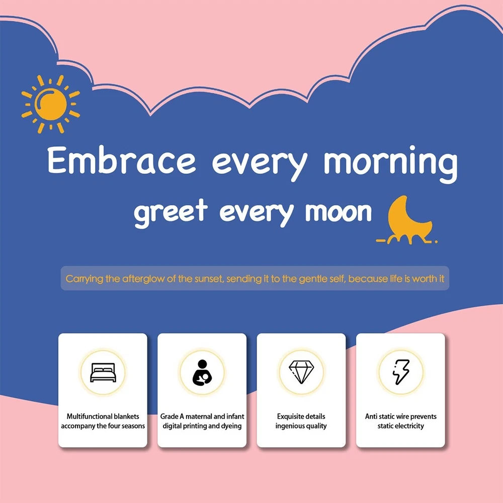 Material Cloth Product Attributes Ordinary Package Size 270*200*30(1mm); 406*346*52(1mm); 420*320*40(1mm) SIZE: 30"x40",50"x60", 60"x80",big enough for one person as a throw, covers feet up to shoulder level. MATERIAL: Its reversible feature allows it to be used from both sides-one ultra soft white polyester sherpa lining and the other, printed flannel fleece. COMFY WARM: Sherpa side is so fluffy and instantly warm to the touch, and colored side is super smooth and cool to the touch. Held up perfectly in the washing machine. HEMMED EDGES: Product is sewn around the edges, making it strong and lasting longer. This blanket will be a perfect addition to your home, but also makes a great gift for your loved ones! MUTIFUNCTION: Suitable for the couch, daybeds, nursery or porch sitting, toddler beds or as a nursery blanket.