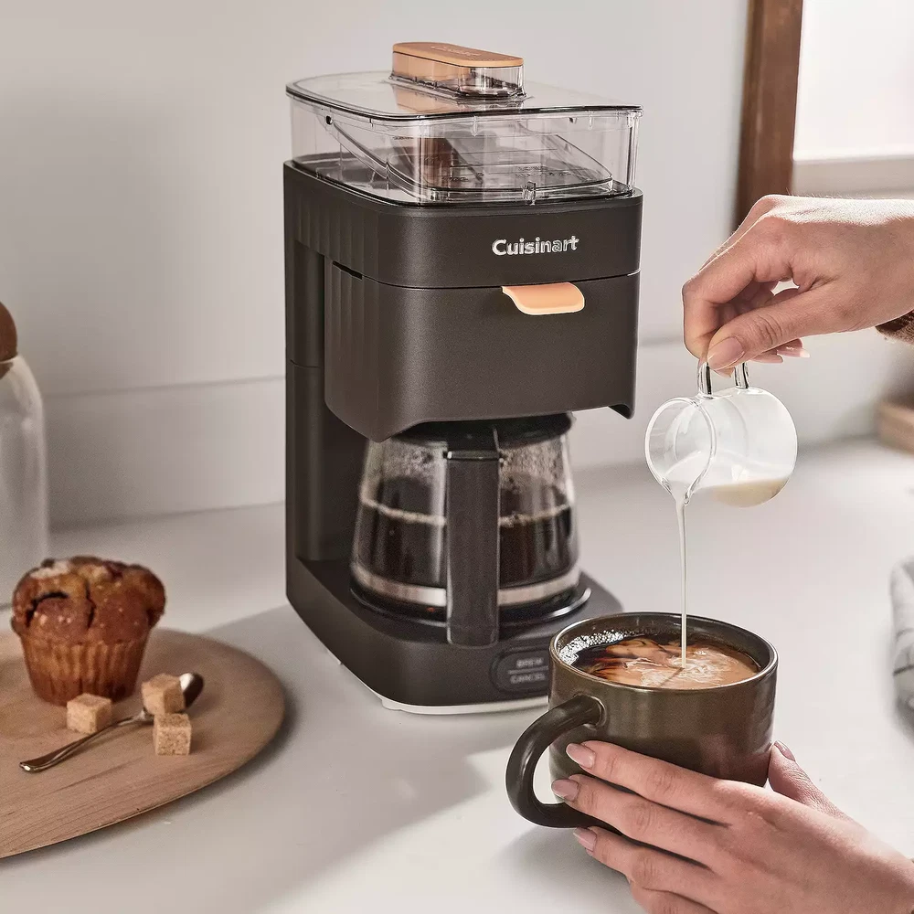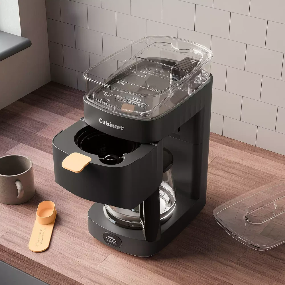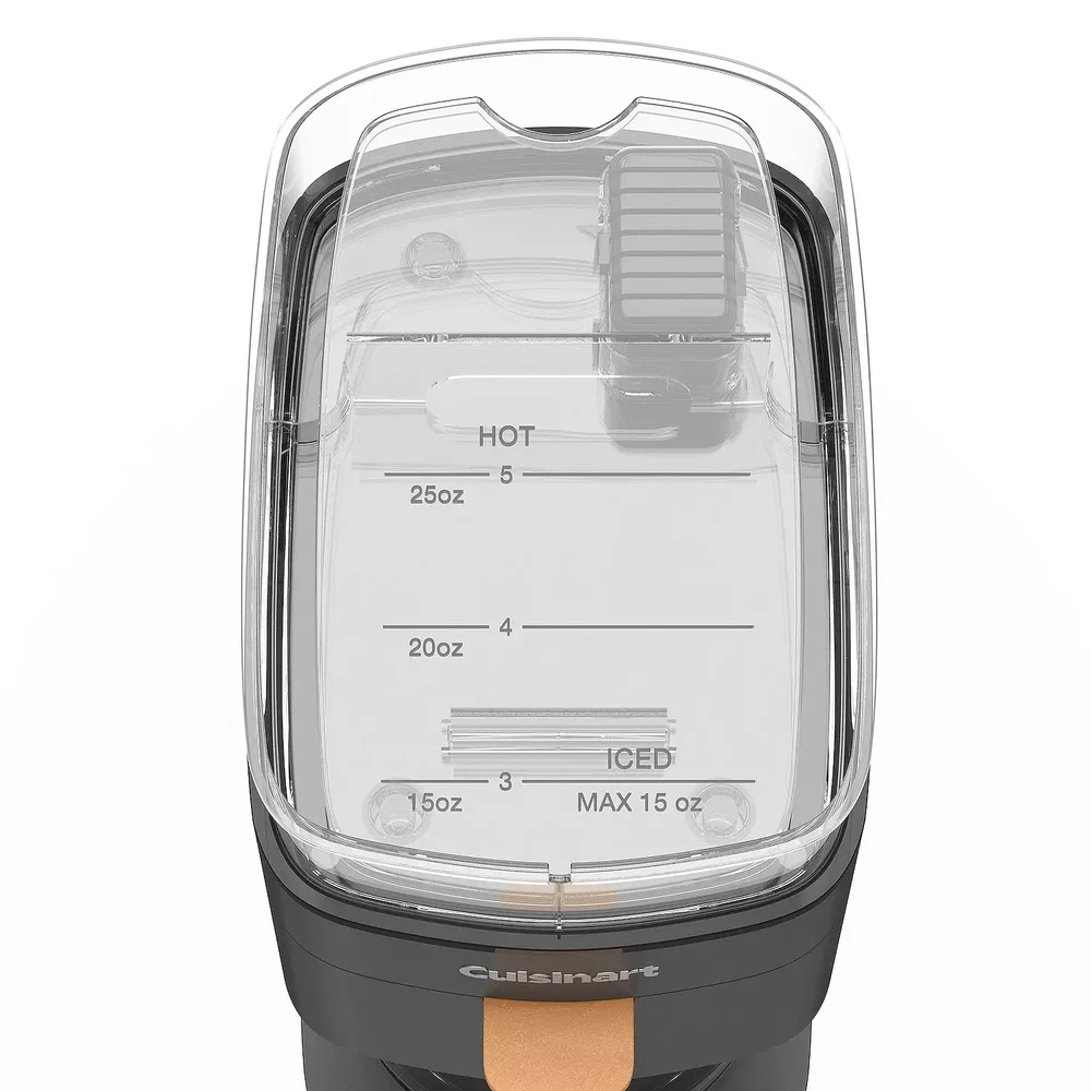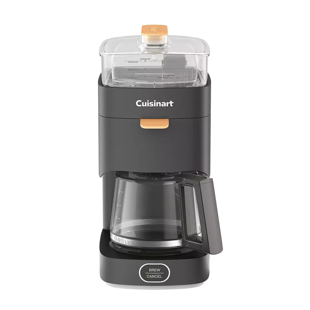 Start your day the right way -- with a steaming cup of coffee out of this Soho 5-cup coffeemaker from Cuisinart. FEATURES Dripless pour spout and knuckle guard Removable 25oz. water reservoir with measurements guide for Hot or Over Ice Brewing Easy one-touch button operation for hassle-free coffee brewing Integrated coffee scoop storage built into the top of the machine Brew Pause™ feature allows you to pour a cup of coffee before brewing has finished Integrated cord storage frees up counter space and makes for easy storage CONSTRUCTION & CARE Material: Plastic Hand wash DETAILS Dimensions: 13.2" x 5.9" x 9.5" Capacity: 5 cups Product weight: 4.3 lbs. Power usage: 550 watts Cord length: 30 in. 3-year warranty Imported