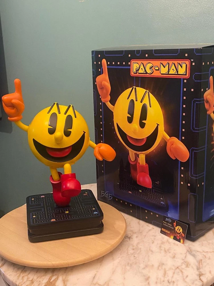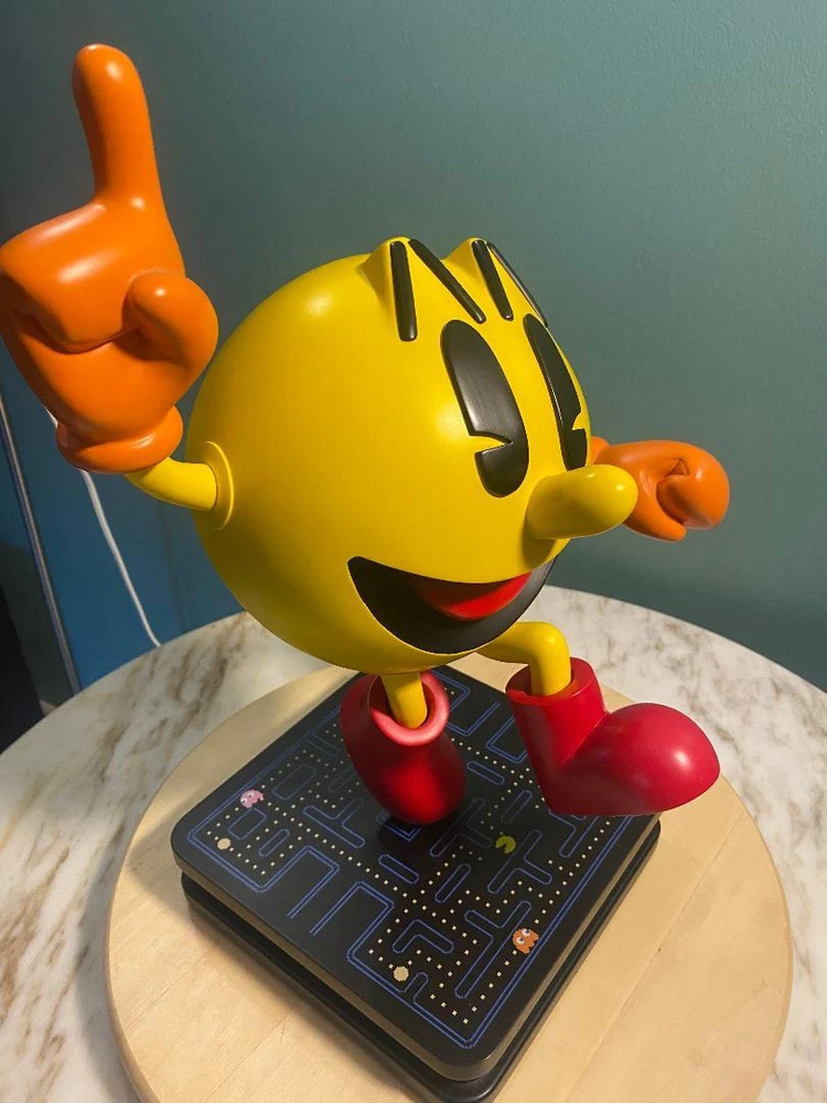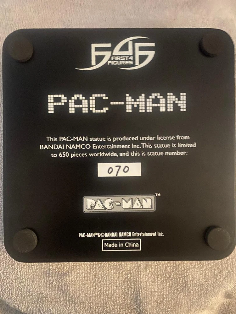 Downsizing Statue Collection. Lowest price on Ebay RARE: First Four Figures: Pacman!!!!!!!!! Mint Condition # 70 of Only 650 Made 17 Inches Tall - Made of Polystone Resin Original Art Box, Shipper and Authenticity card F irst 4 Figures is proud to present their Pac-Man statue. Pac-Man is sculpted as if he is stepping right out of the classic arcade game. The base is decorated with the classic maze outline, complete with his ghost enemies. Standing at 17 inches tall from the tip of his right hand to the detailed base, Pac-Man will be a great centerpiece for any video game collection. The yellow, pie-shaped Pac-Man who travels around a maze trying to eat dots and avoid four mean ghosts, was developed by Namco. The character quickly became a 1980s icon, and has since spawned many variations on multiple platforms over many generations. Pac-Man is regarded as one of the most influential video games of all time. Product Features 17 inches (43.18cm) Made of high-quality polystone resin Artist: Todo Kolev Limited worldwide edition Detailed base featuring graphics from the classic arcade game Deluxe, full-color packaging Hand-numbered base Includes authenticity card