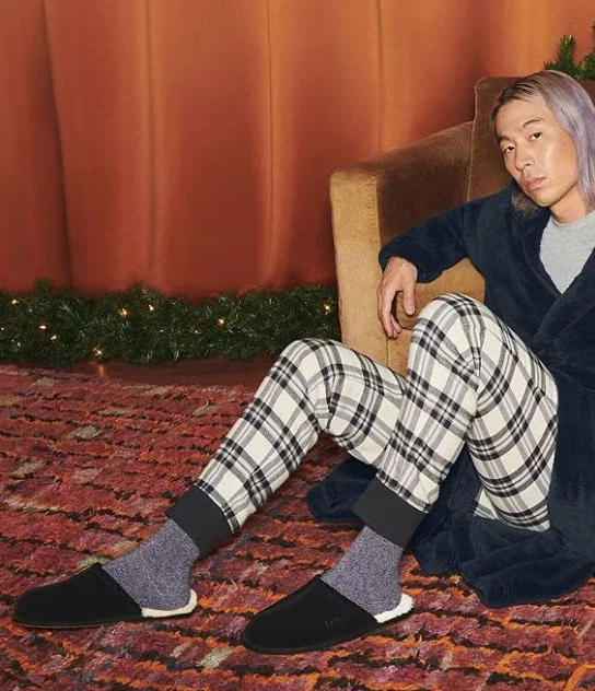 Flash Sale! UGG Men's Scuff Suede Slippers - Black, Medium | New DESCRIPTION From UGG®, the Men's Scuff Suede Slippers feature: Premium suede upper Suede with embossed UGG® tread design for indoor use Vamp lined with 17 mm UGGpure™ wool Slip on construction 17 mm sheepskin insole Artificially dyed and treated real sheepskin from sheep or lamb (Australia, European Union or United States) Imported.