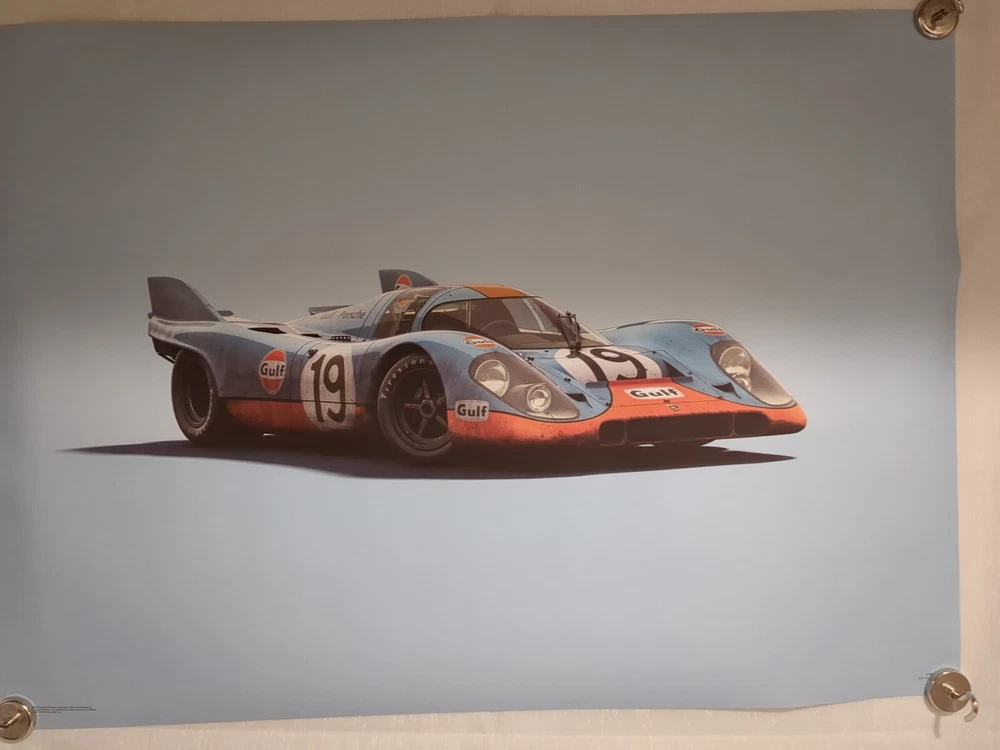 OBO Porsche 917 Gulf 24 Hours LeMans 1971. Printed on highest quality linen paper 27 1/4x19 and 3/4 Unbelievable print special purchase. Only three available Track Page Views With Auctiva's Counter If your an INTERNATIONAL BUYER PLEASE Contact Me First So I can make a Special LISTING for Multiple ITEMS So we Can Sell the ITEMS so it SAVES YOU ON SHIPPING