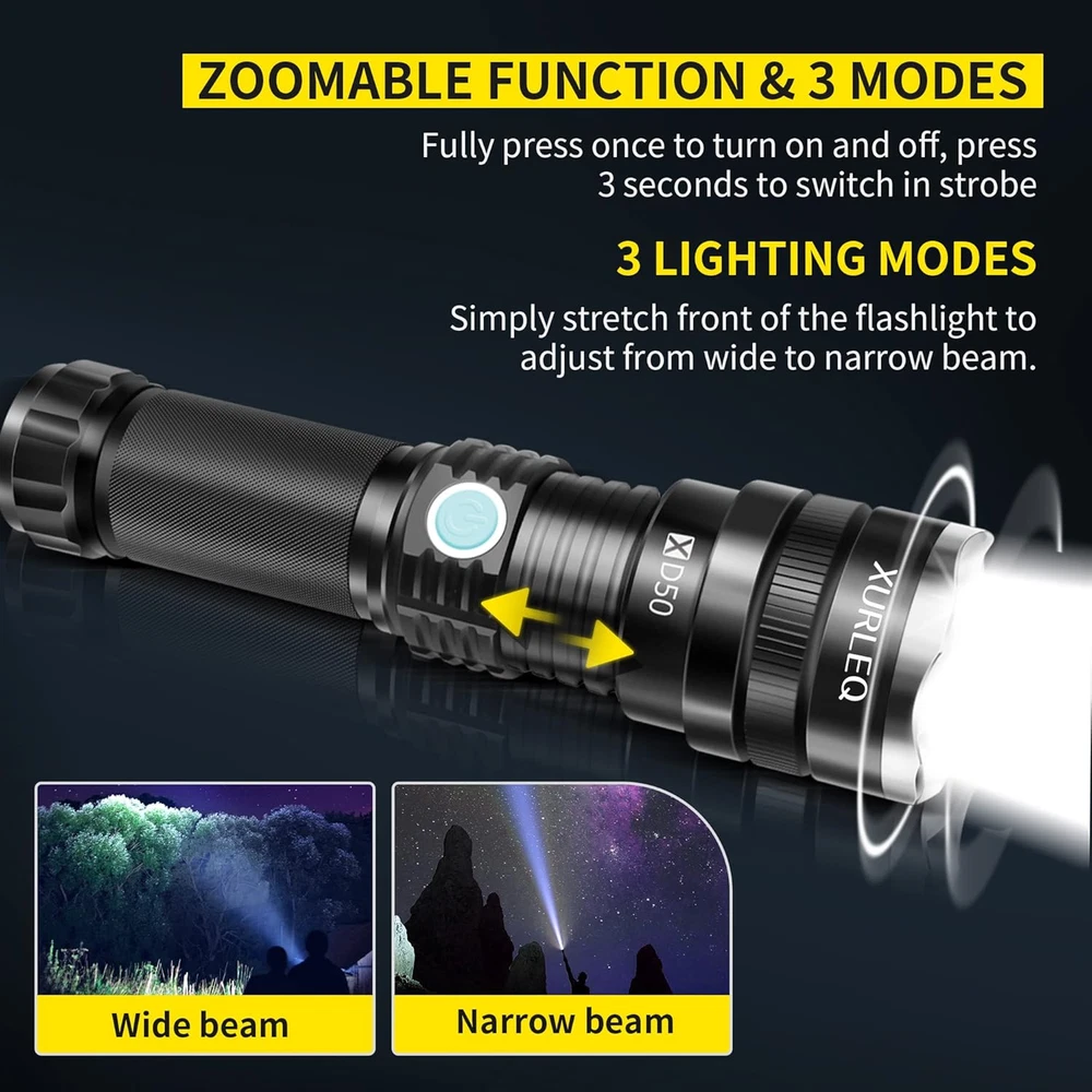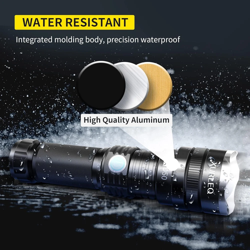 Store New Arrivals Add to Favorite View Feedback Contact Flashlight Rechargeable Flashlights High Lumens Streamlight Flashlight 3 Modes Adjustable Waterproof Tactical Flashlight LED Flashlight for Camping Biking Hiking Outdoor Emergency Description Item model number XLQ-P70 Light Source Type LED Style Compact Power Source Battery Powered Battery Cell Composition Zinc Chloride Country of Origin China Batteries Included? Yes Special Features Adjustable,Portable,Resistant,Sturdy,Water Resistant,Waterproof Batteries Required? Yes Product Dimensions 6.1"D x 1.9"W x 1.9"H Material Aluminum Number of Batteries 1 Lithium Ion batteries required. (included) Included Components Bulb included Item Package Quantity 1 White Brightness 710000 Lumens Brightness 7100 Lumen Water Resistance Level Water Resistant Item Weight 12.1 ounces Battery Description Lithium-Ion Special Feature Adjustable,Portable,Resistant,Sturdy,Water Resistant,Waterproof Part Number XLQ-P70 Color Black Batteries 1 Lithium Ion batteries required. (included) Recommended Uses For Product Camping, Hiking, Outdoor Biking, Emergency Size P70 【SUPER BRIGHT】Super Bright: P70 LED bulb gives out a max 710000 lumens and lights up a whole foot field easily. Delivers a powerful beam and high-definition vision, that’s brighter than most car headlights. 【ADJUSTABLE FOCUS】Adjustable focus for use in different situations (just rotate torch head to adjust zoom). flashlight allows you to select focus between spot and flood beams. Spotlight for long-range observation and floodlight for large-area illumination. 【SUPER LASTING】 Superior quality craftsmanship with weather-resistant seals and anodized inside and out for improved corrosion resistance. Sturdy and lasting enough for a long time daily using. 【WATERPROOF 】Lotus top can protect the lens, control cutting technology, rhombus skid-proof and waterproof. Water resistant from splashing water. It's perfect for use in the rain, snow, or emergency situations. Product Description ABOUT US We offer the best prices around on high quality products. Our E-store includes media such as books, movies, music and games while offering electronics, toys, sporting apparel, clothing, tools, general home, garden items and more. SHIPPING We are always working hard to ensure your package arrives as soon as possible. Please understand that some factors like weather, high postal traffic, and the performance of shipping companies are outside of our control. We offer free shipping to the lower 48 states and ship within 2 business days of payment, usually sooner. We do not accept P.O. Boxes. Please provide a physical address. For shipping outside of the continental USA, we only use eBay's Global Shipping Program.The item is shipped to KY and then sent to the rest of the world. International customers are responsible for all duties and taxes. Continue to check out in order to calculate costs for shipping the item to your country. Messages regarding eBay's Global Shipping Program MUST be directed at eBay EXCLUSIVELY. RETURNS We offer a 30-Day Return Policy on items which you are not completely satisfied with. You have the option for a full-refund or an exchange of the item. No returns are available on items shipped outside of the USA. PAYMENT We accept PayPal. CONTACT US This page content is yet to come Please ad us to your favorite seller and visit again later Thank You CUSTOMER SATISFACTION We try our very best to make sure every customer is completely satisfied. If there's a problem, message us! We're happy to help. WE ACCEPT Copyright © 2021 AutoDS. | All Rights Reserved
