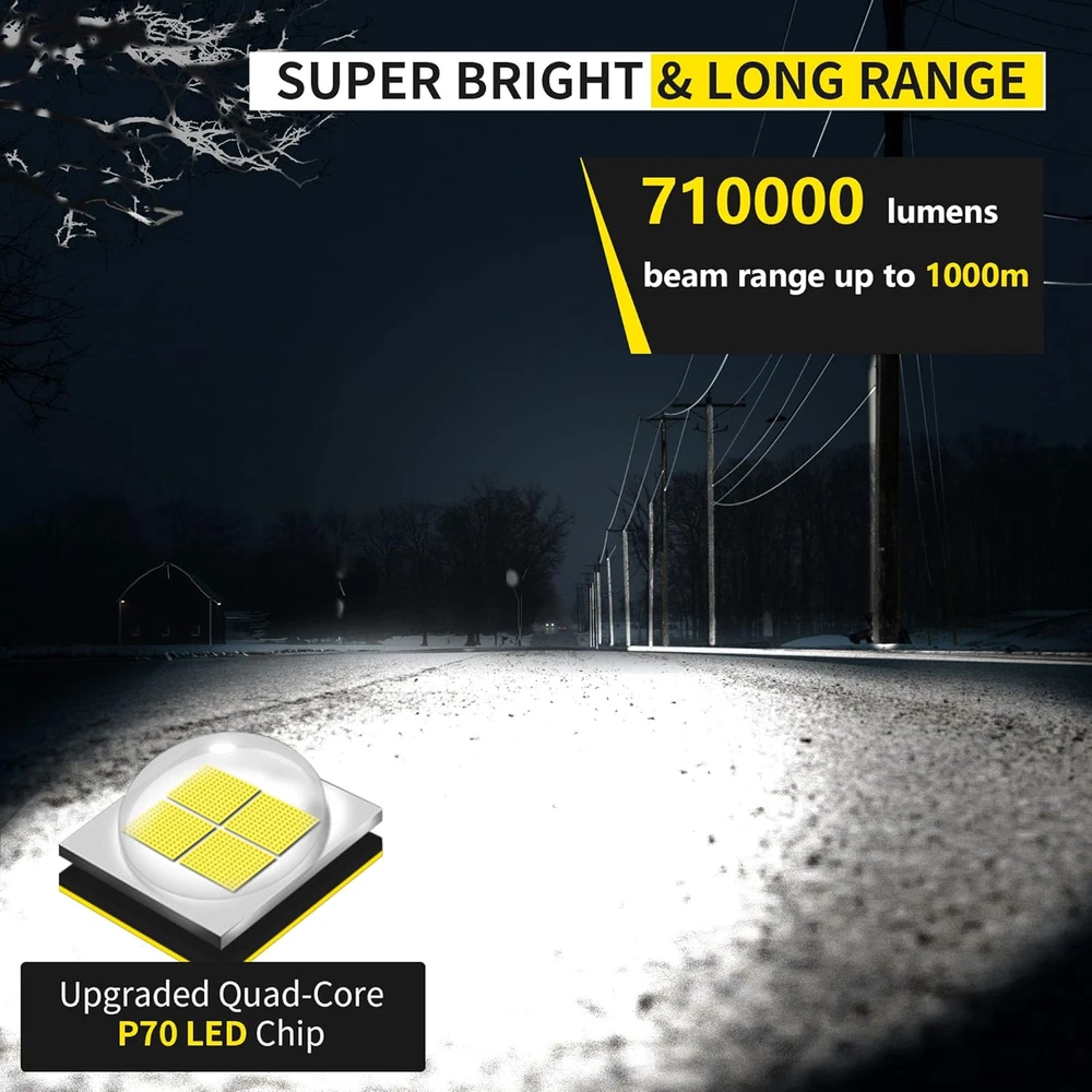 Included Components: Bulb included Battery Cell Composition: Zinc Chloride gtin13: 705353504945 Special Features: Adjustable,Portable,Resistant,Sturdy,Water Resistant,Waterproof Light Source Type: LED Part Number: XLQ-P70 Water Resistance Level: Water Resistant Item Package Quantity: 1 Size: P70 Batteries: 1 Lithium Ion batteries required. (included) Brightness: 7100 Lumen Brand: Does not apply Item model number: XLQ-P70 Style: Compact Power Source: Battery Powered Batteries Included?: Yes Recommended Uses For Product: Camping, Hiking, Outdoor Biking, Emergency Product Dimensions: 6.1"D x 1.9"W x 1.9"H Batteries Required?: Yes Country of Origin: China Type: Does not apply Number of Batteries: 1 Lithium Ion batteries required. (included) Color: Black White Brightness: 710000 Lumens Item Weight: 12.1 ounces Battery Description: Lithium-Ion Material: Aluminum UPC: 705353504945 Special Feature: Adjustable,Portable,Resistant,Sturdy,Water Resistant,Waterproof