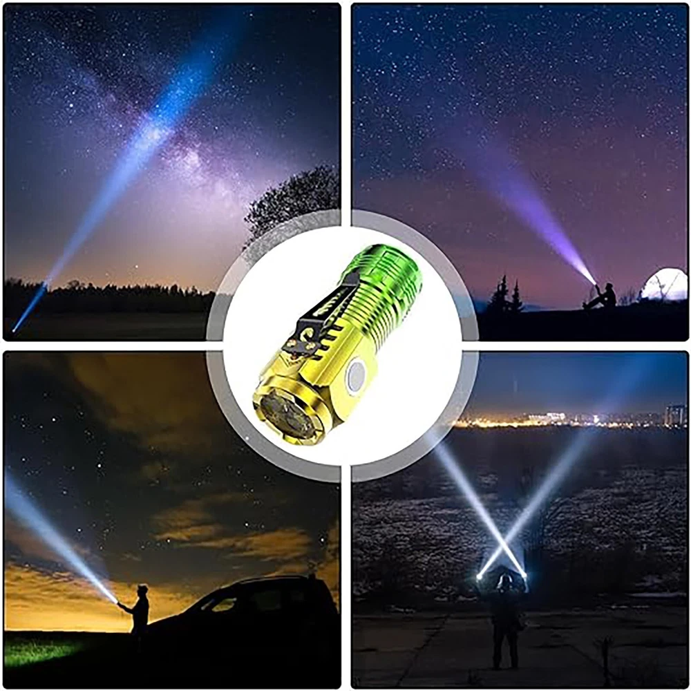 Flashlight Super Bright Mini Flash Three Eyed ABS Flashlight Hat Clip Light Features: 【 Super Brightness 】: Experience the powerful generated by the three high brightness LED cells and a frog eye lens of our mini flashlight. Its extraordinary lighting can illuminate the spaces. The central intelligent one button can easily control the brightness level. Multiple modes: Multi mode settings meet all your needs! This mini flashlight combines three high brightness LED chips into a beam with five modes, ensuring that it can adapt to lighting in any scene. Perfect for outdoor enthusiasts or DIY projects, providing lighting for all your adventures 【 Portable 】: This mini flashlight is compact and lightweight, super portable, and can be easily placed in a pocket or bag. Keep it at hand for quick access and convenient use . Durable and reliable: The and high-strength body of the mini flashlight its impact resistance, wear resistance, and daily use. The fully sealed design and sturdy enable it to withstand all weather conditions while protecting internal circuits. Easy Charging: Equipped with an advanced C-type fast charging port, our high mini flashlight is designed to provide maximum convenience. Thanks to the powerful 18350 lithium battery and the integration of smart chips, it provides long-lasting performance. Product Description: Flashlight Super Bright Mini Flash Three Eyed ABS Flashlight Hat Clip Light Material: Color: as the picture shows, (Due to the difference between different monitors, the picture may have slight color difference. please make sure you do not mind before ordering, Thank you!) Package weight: 52g Package size: 9x4x3cm,(Please allow 1-3mm error due to manual measurement. please make sure you do not mind before ordering.)