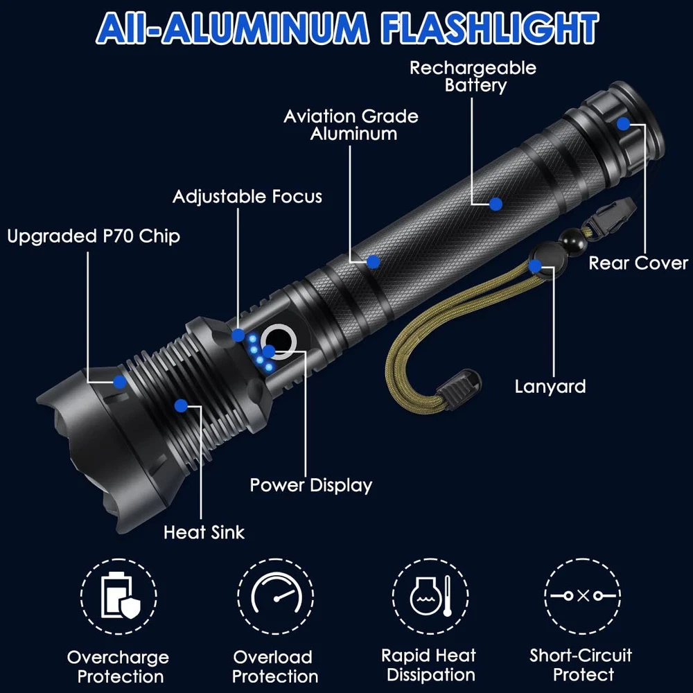 Flashlights High Lumen Rechargeable, Heavy Duty 990000 Lumens Rechargeable Fl...