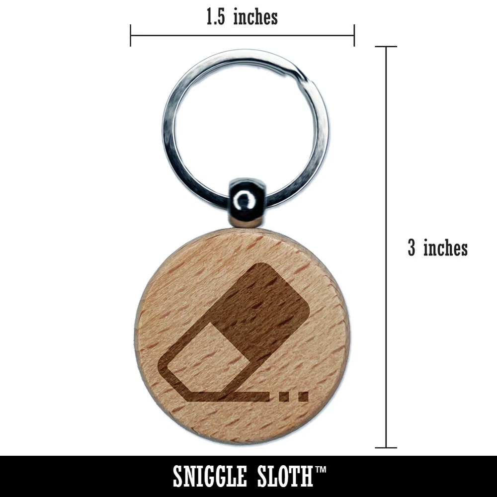 Flat Eraser Icon Homework School Engraved Wood Round Keychain Tag Charm