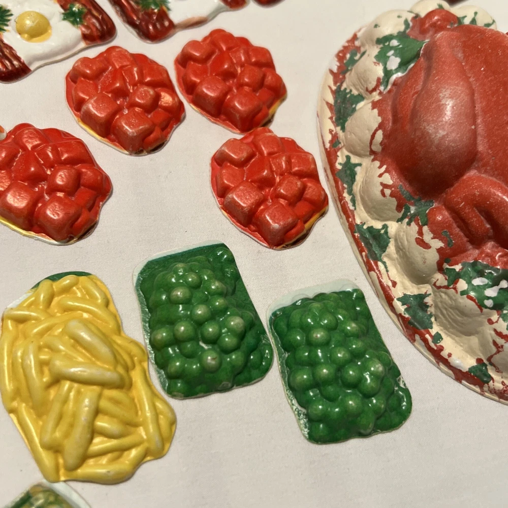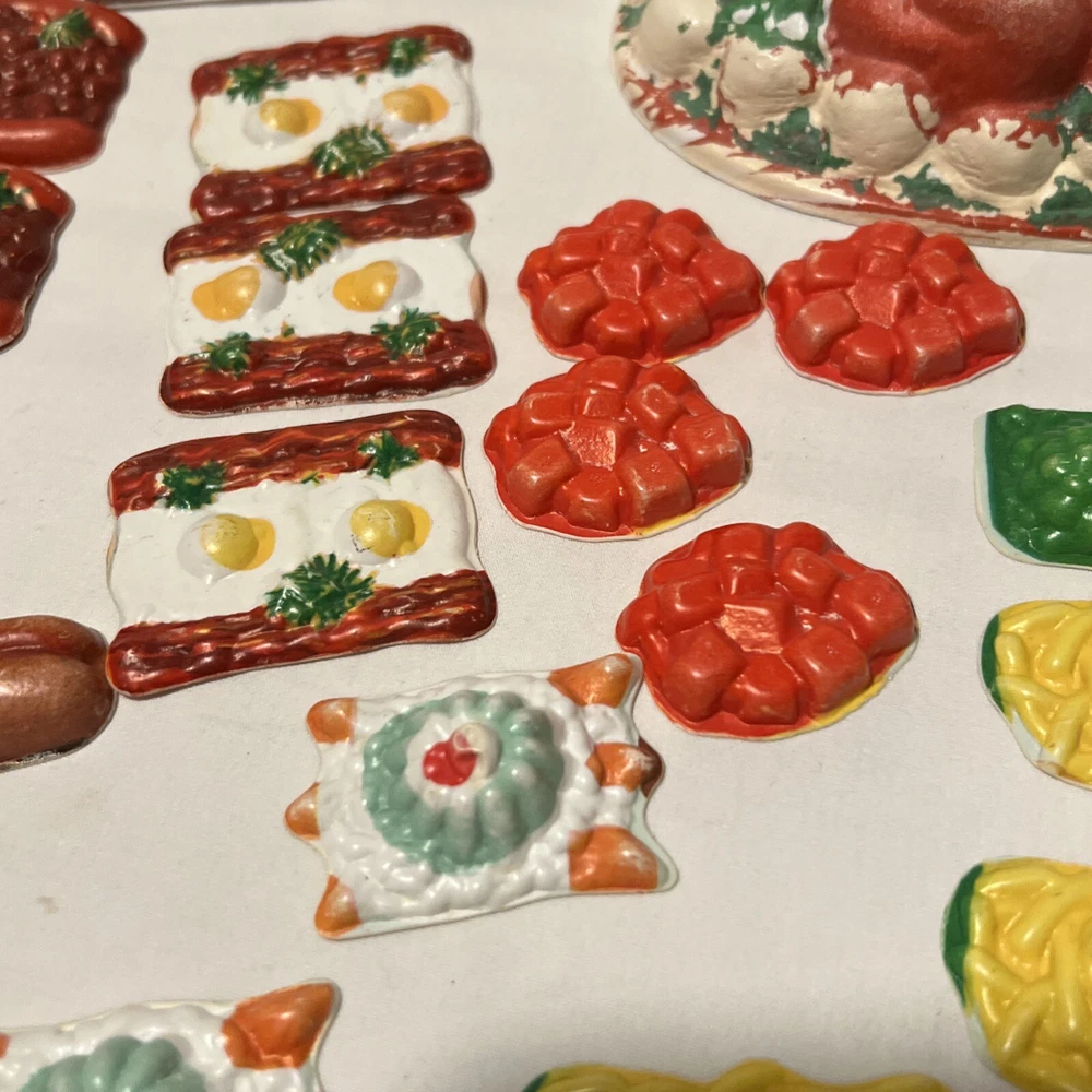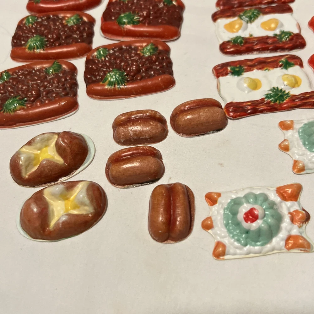 Flat Plastic Food Toy Pretend 33 Pieces Child Play Kitchen There are 33 pieces of fake pretend molded flat food as seen in photos. Pieces include Turkey, sliced bread and rolls, vegetables and dessert. There are several duplicates as shown. Like pieces will be stacked nested together. There are some scratches and color loss. Please see photos for more details and email us if you have any questions. From a smoke-free with pets home. Payment Terms: Payment is due within 2 days of close of sale/auction. If for some reason you cannot pay within this time period, please contact us immediately. Check out our other items and email us if you have any questions. Please email us if you have any questions. We look forward to doing business with you again! Be sure to "SAVE THIS SELLER" on our Items For Sale page. dbcl-2-1