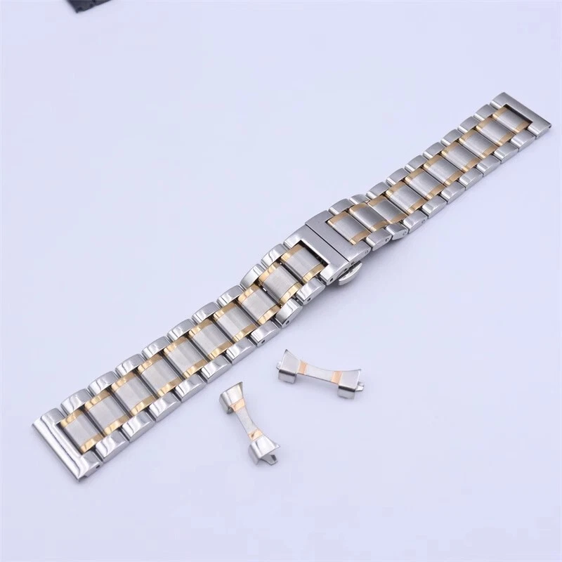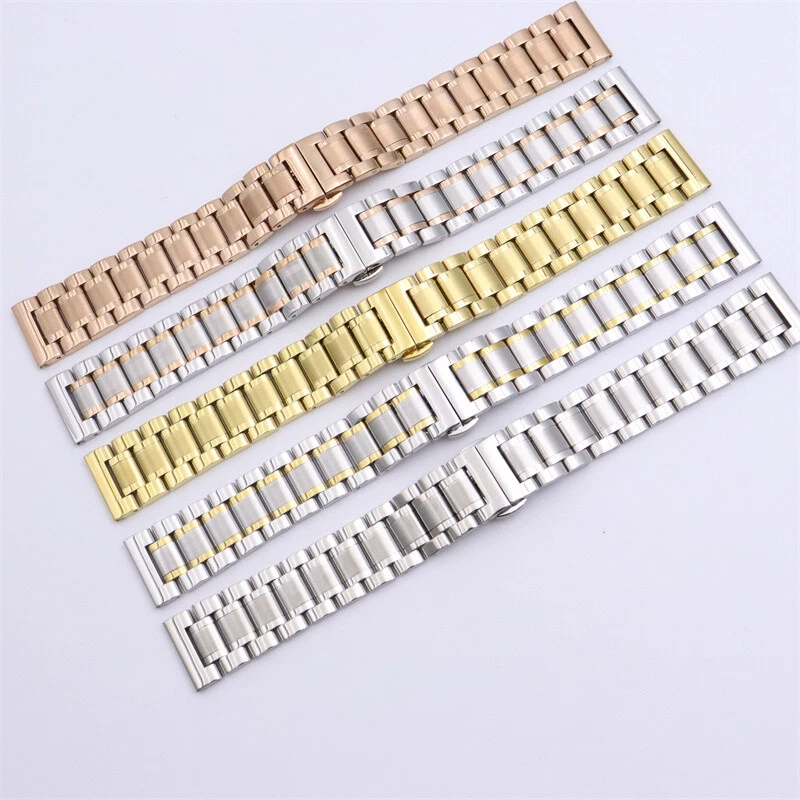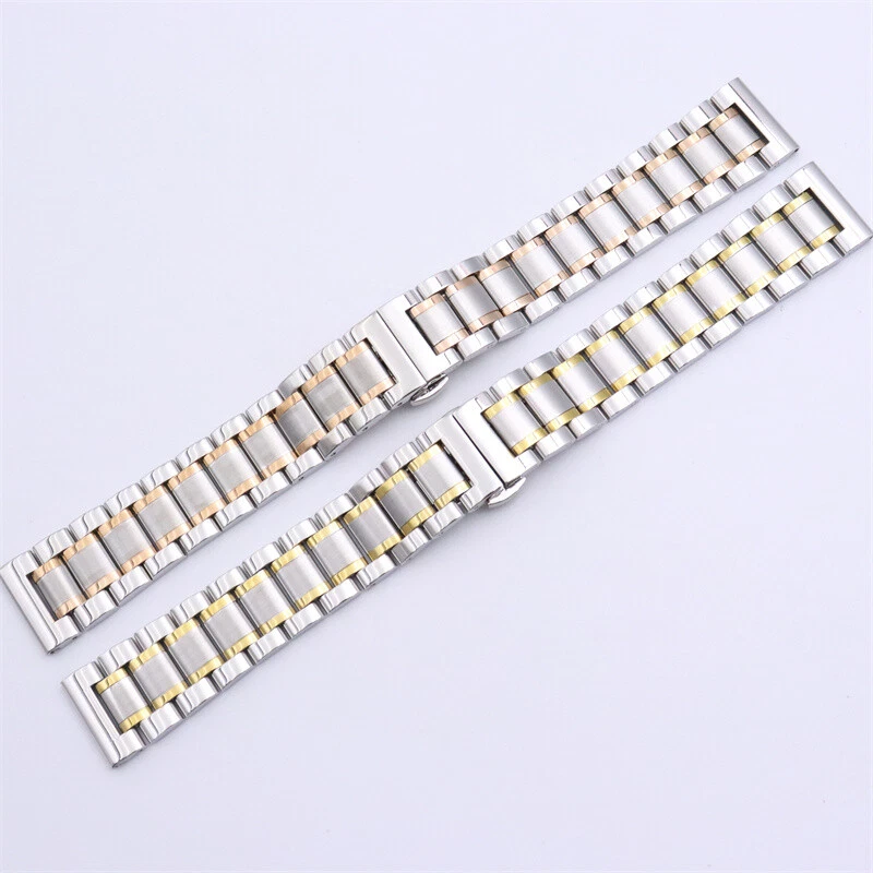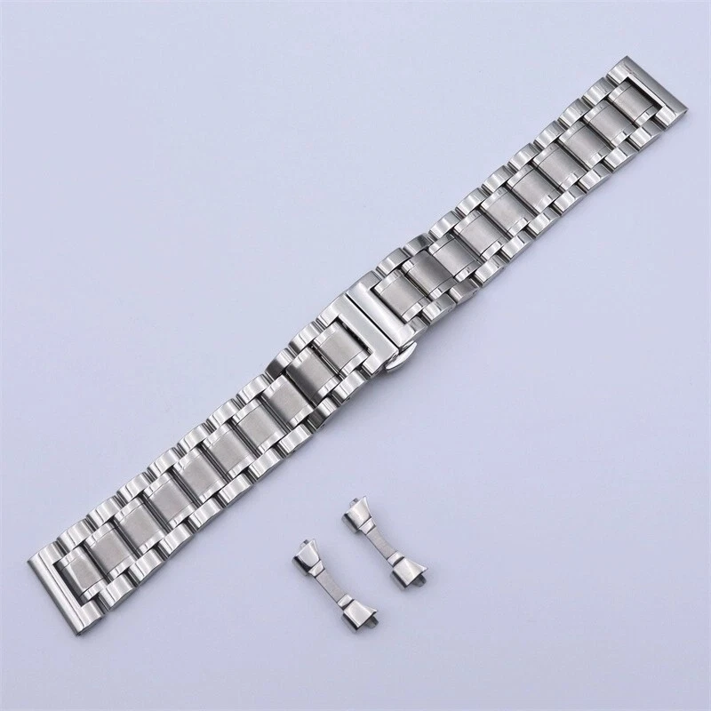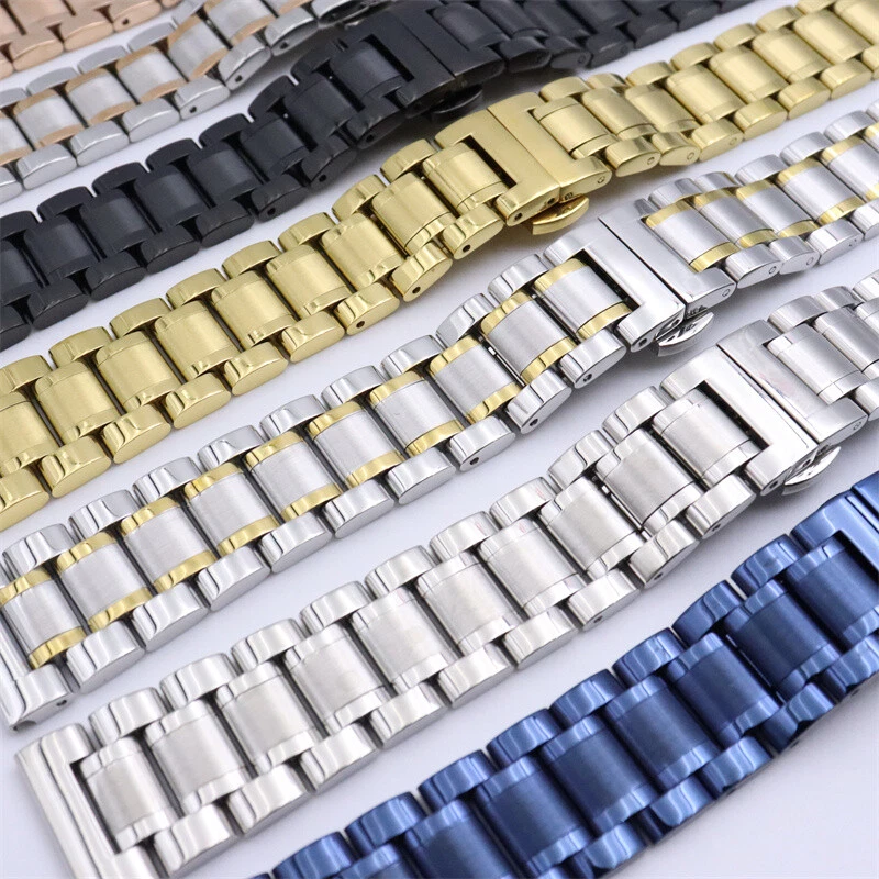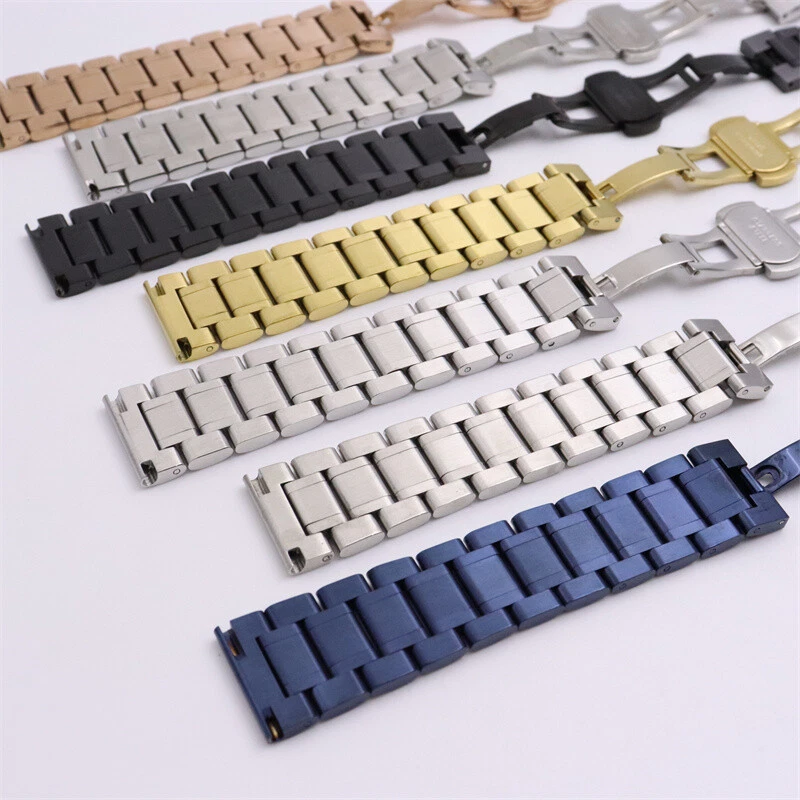 Flat+Curved End Metal Bracelet 10mm-24mm Stainless Steel Watch Strap Band Unisex