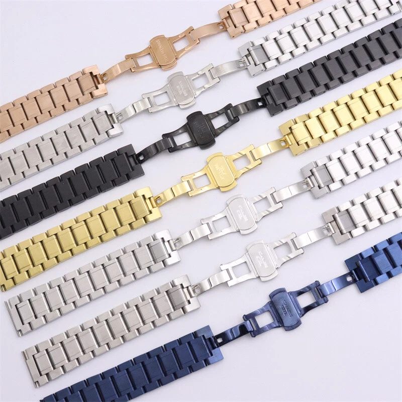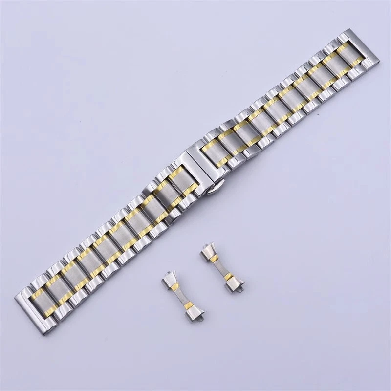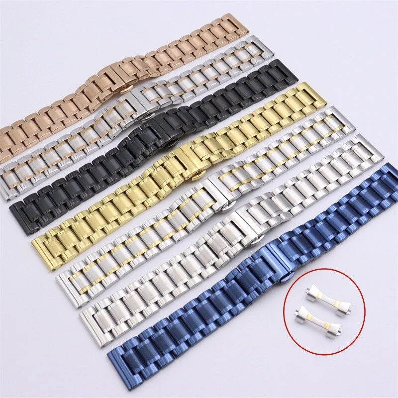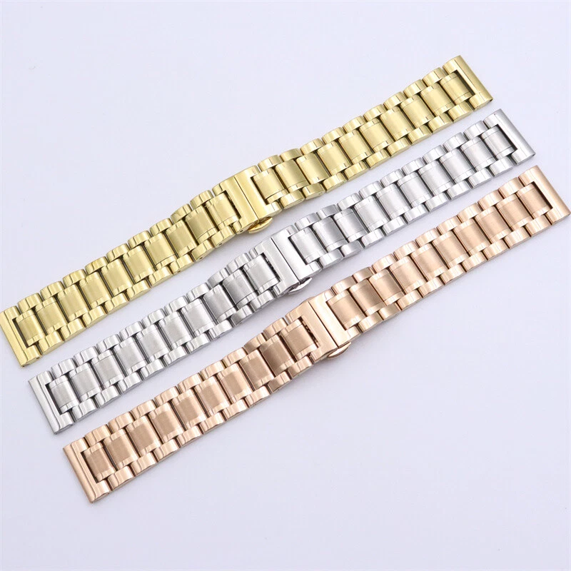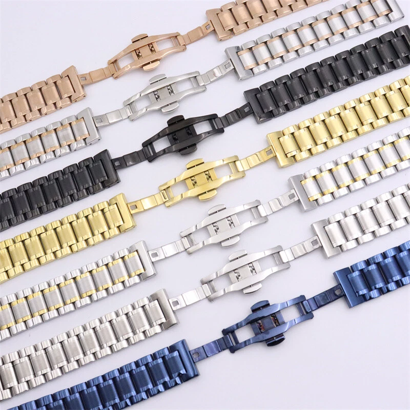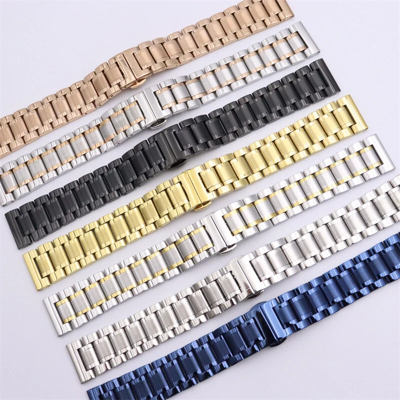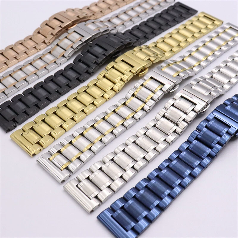 Flat+Curved End Metal Bracelet 10mm-24mm Stainless Steel Watch Strap Band Unisex
