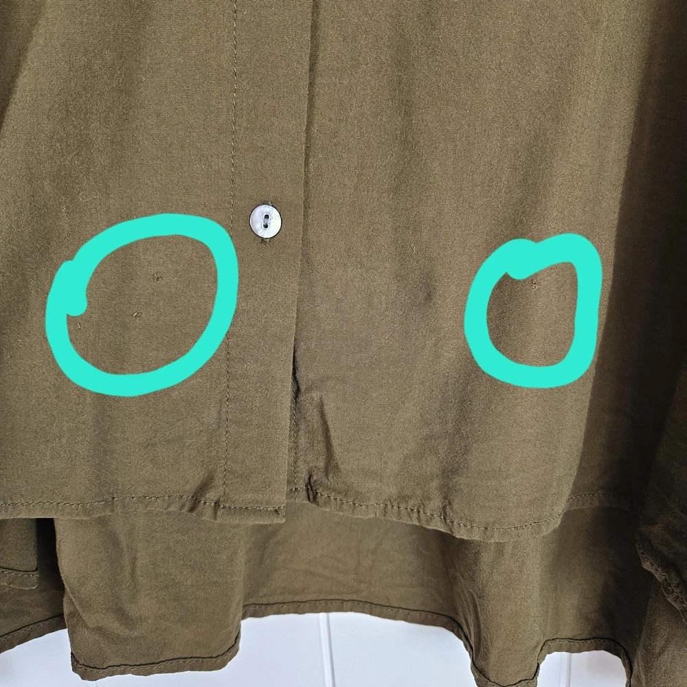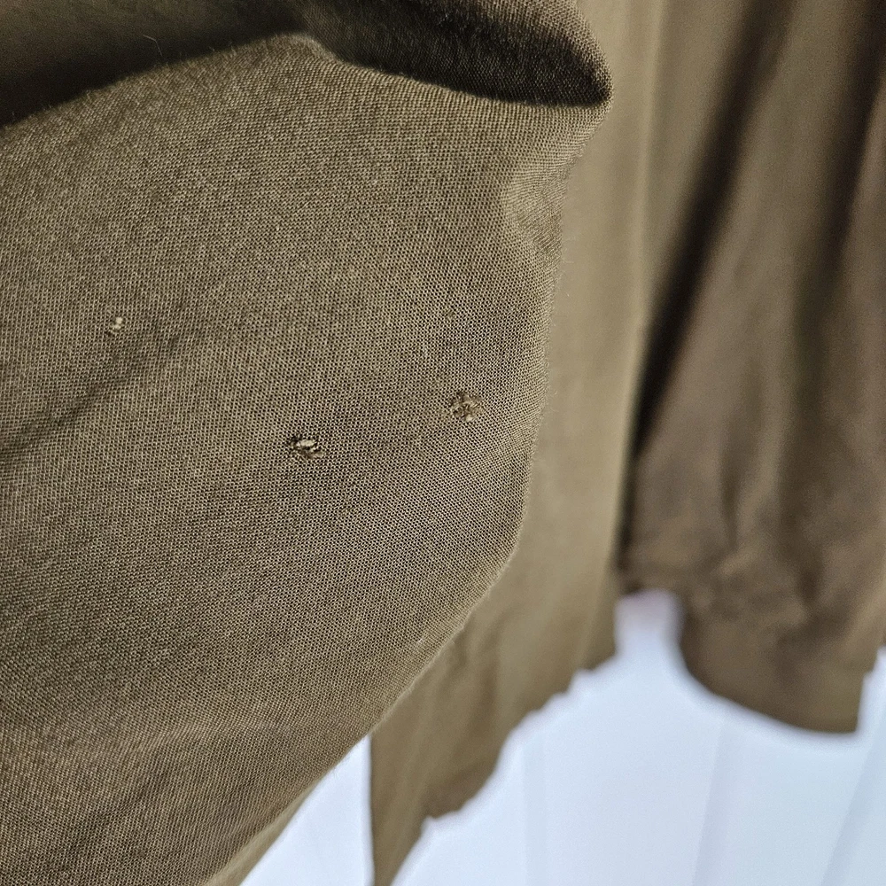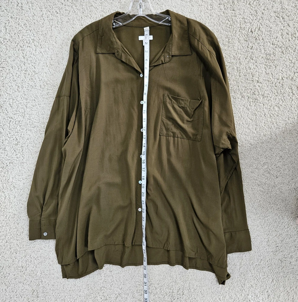 Flaw- there are three small holes on the bottom of this blouse as pictured. The won't be noticeable if front tucked. J Jill Blouse Button Up Long Dolman Sleeve Olive Green Lightweight Womens 2x Loose Boho Classic Capsule Office Lightweight Good pre-owned condition. Please see photos for measurements. H2