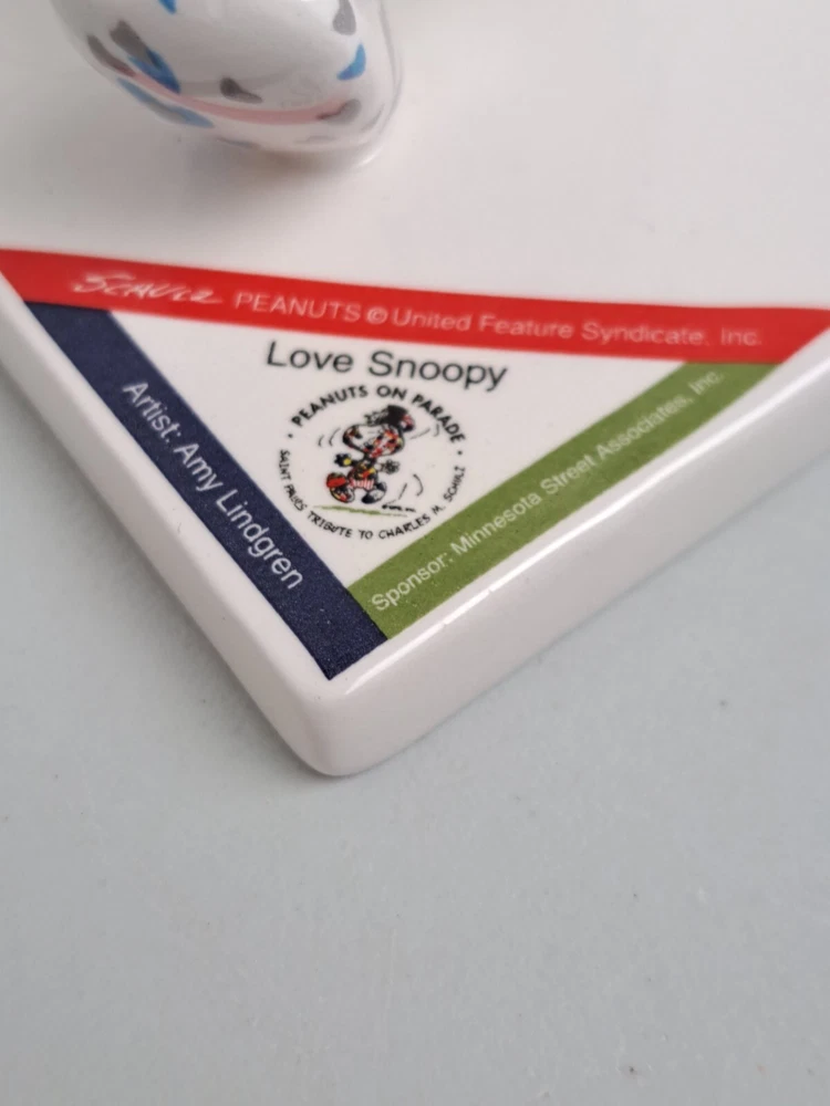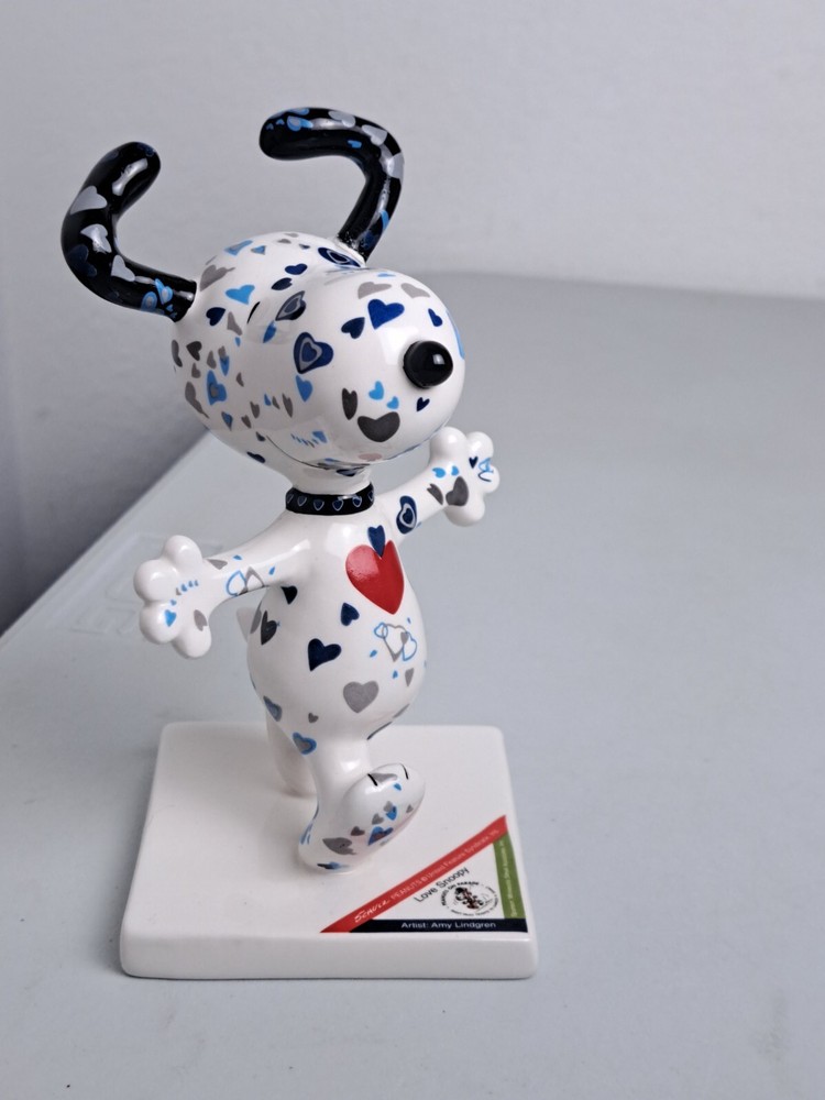 Westland Giftware Peanuts on Parade 'LOVE SNOOPY w/ Hearts' 5.25" Ceramic Figurine #8392 is in Nice Overall Condition with a Small Manufacturing Flaw On Back Side of Snoopy's Head. Artist Amy Lindgren. NO BOX. SUPER CUTE!!
