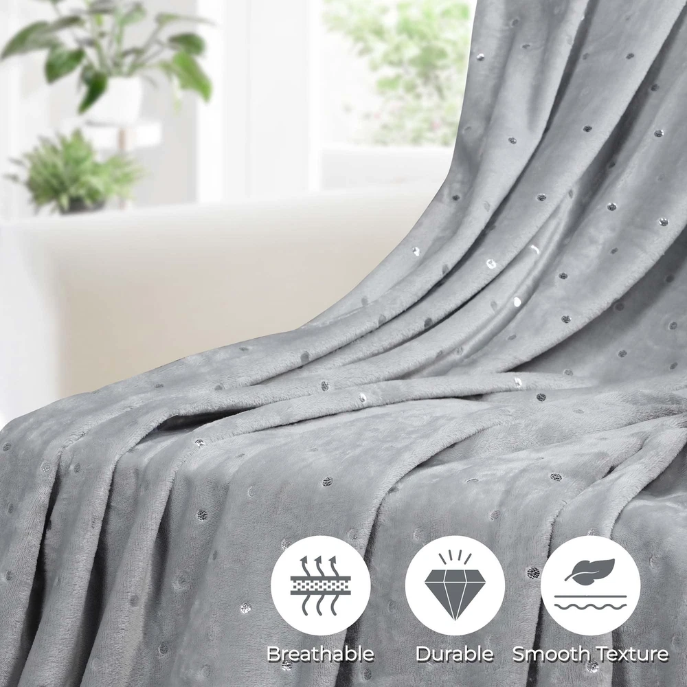 Indulge in ultimate comfort and warmth with our Fleece Plush Decorative Blanket. Crafted from 100% Microfiber Fleece, this blanket is incredibly soft and cozy, allowing you to wrap yourself in luxurious comfort. Choose between a delightful polka dot pattern or a classic solid design to suit your personal style. This blanket is machine washable for easy care. Available in an assortment of vibrant colors and sizes, this blanket will surely enhance your living room as a sofa or couch throw or your bedroom as an added layer while you rest. DURABLE AND LONG-LASTING: This soft, woven blanket is made from made from 100% Microfiber fibers that are soft to the touch and perfect for cozying up; this blanket is long-lasting and durable; perfectly pair with any home decor styles MODERN DESIGN: The simplistic yet stylish design of this blanket features your choice of Polka Dot or Solid patterns in your color choice of Linen, Platinum, Black, Creamsicle, Grey, Ivory, Mauve, Navy Blue, Sage, Sepia, Winter Blue and White ALL-SEASON COMFORT: This medium weight blanket is breathable and ultra-soft with a smooth texture, so you can enjoy it all year round; Ideal as a sofa or couch throw in the living room or as an added layer in the bedroom EFFORTLESS CARE: For the most luxurious results, machine wash and tumble dry low; Always care label instructions for best results DESIGNER FINISH: This throw blanket is elegantly-finished with self-bound edges for a clean look and durability, making a great gift for housewarmings, engagements, bridal showers, holidays, vacations, dorm rooms and more