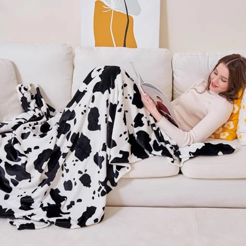 Fleece Blanket Throw Size - 280GSM Throw Blanket (50 X 60 Inches) Cow Print
