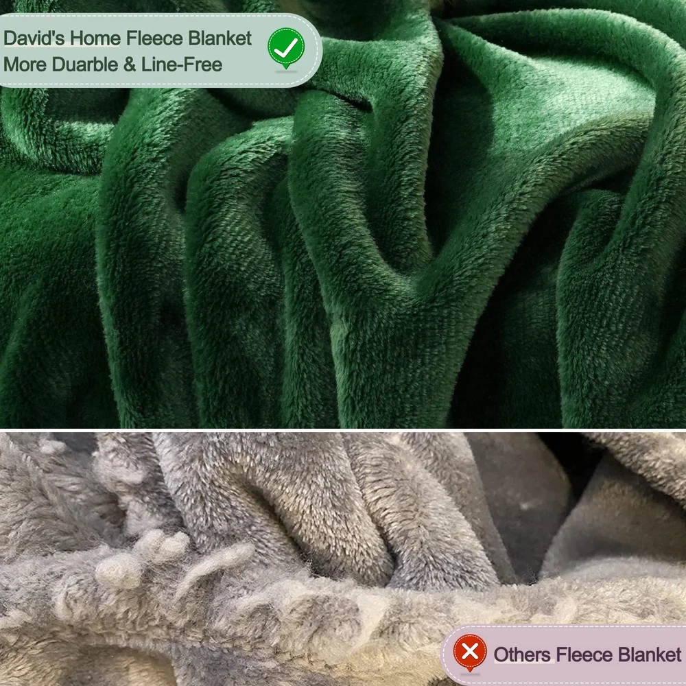 Ultra Soft & Comfy: David’s Home fleece flannel blankets are made of 300GSM 100% premium skin-friendly fleece fabric, which is super soft & comfy, has the wool-like luxurious feeling. Features in better warmth, softness and breathability, this blanket will offers you with the best sleep experience in different environments. More Durable: Why we say it's a more durable blanket? Firstly, it has wider stitched border, the seams are neat and firm, processed the excellent close sewing, ensures the durability of this blanket. Secondly, the fabric is of higer density than normal ones, can absolutely sustain daily sharp objects, such as rings, animals nails and so on. Thirdly, We has refined the fabric and dyeing process, which will greatly prevent the problem of fuzzing, lint, fading or shirinking after multiple washing. Widely Application: Our reversible fleece blanket is available in 4 sizes, not only for a practical fleece blanket, but also can be used as a bedspreads or bed layering. Features in fine texture, super soft, folding resistance, lint-free, no pilling, no shrink, this blanket is perfect for couch, bed, office, car, pet use. No matter you are looking for a blanket for home, picnic, camping, office, travel, even for your pets or be a gift, this blanket won't let you be disappointed. Easy Care: Machine wash cold with like colors. Gentle cycle. Do not bleach. Tumble dry low. Remove promptly from dryer to avoid wrinkles.Cool iron if required. No pilling, no shrink, no fade, labor tests show that the throw blanket keep its shape and stay brands new after multiple wash cycles. Package Include: 1 Pack dark green flannel fleece queen size blanket(90" X 90"), perfect for bed couch sofa,home decoration or pet use.