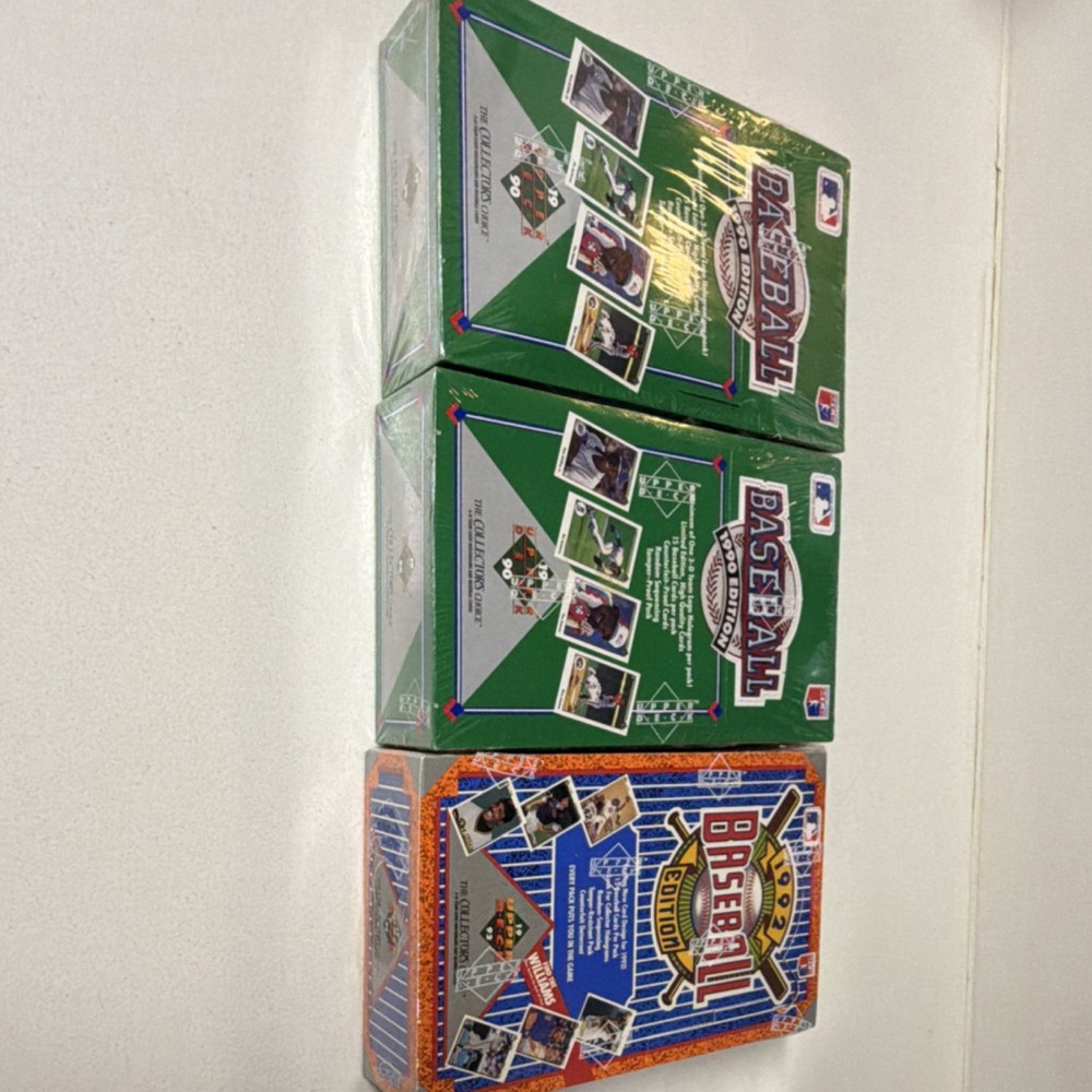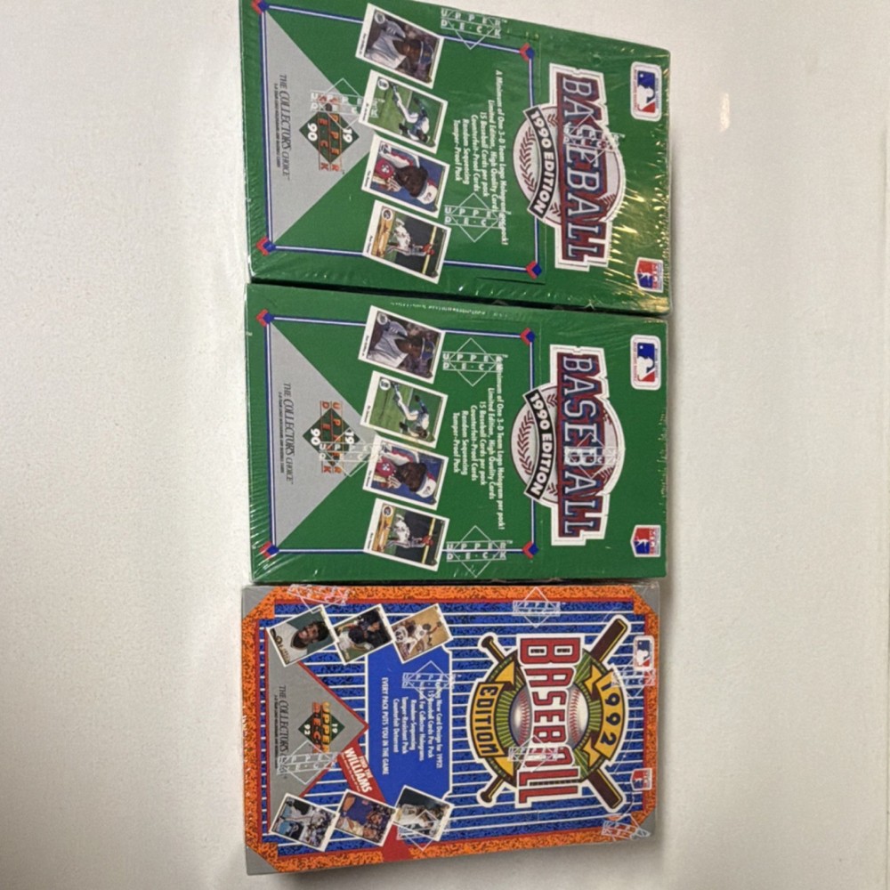 This product is a lot of sealed trading card boxes from the MLB baseball seasons of 1990-1992, including brands like Fleer, Donruss, Score, and Leaf. The boxes can contain players like Bo Jackson, Roger Clemens, and Mike Greenwell. These vintage baseball cards are made of card stock and come in standard size, perfect for collectors looking to add classic cards to their collection from the 1990s. Each box contains cards from various sets and is in English language, making it a valuable addition to any sports trading card collection