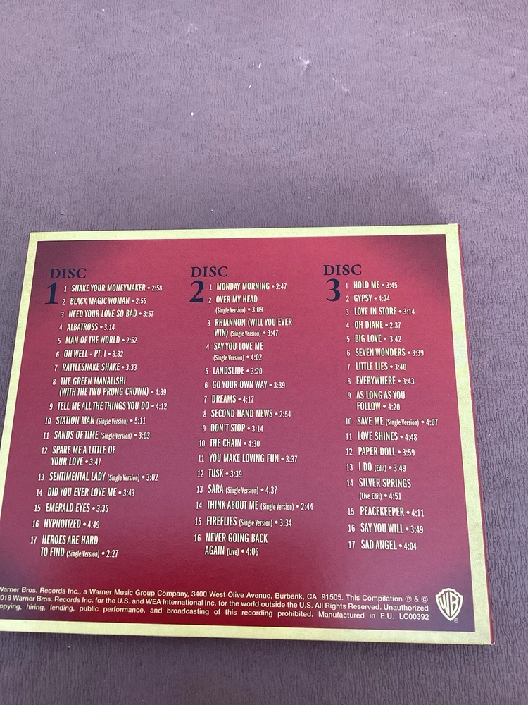 Type:Albumgtin13:Does not applyFormat:3 x CDEAN:Does not applyFeatures:SealedArtist:Fleetwood MacRelease Year:2018Release Title:50 Years Don't StopCase Type:Triple Jewel CaseOccasion:New YearRecord Label:Warner Bros.