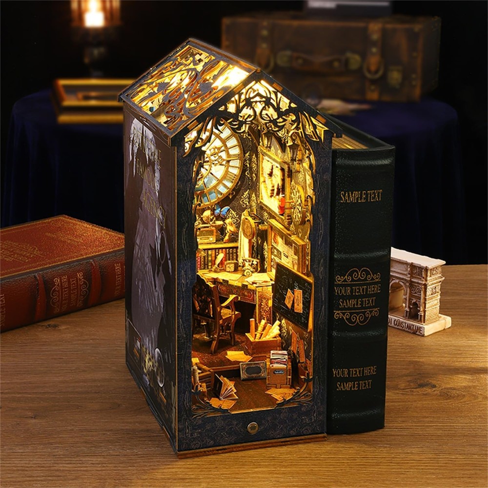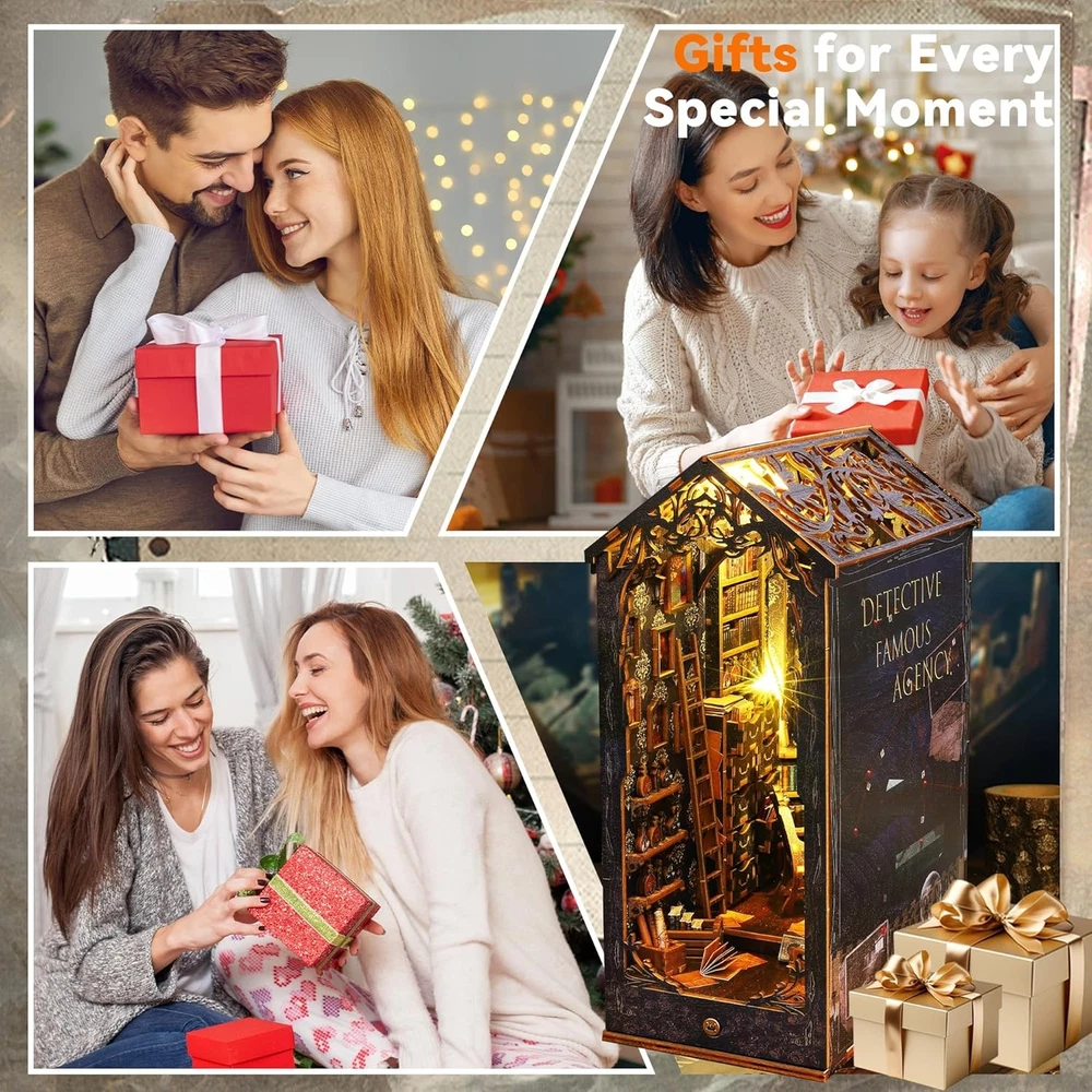 Flever Dollhouse DIY Book Nook Miniature Kit, Detective Famous Agency Product Details Product Dimensions: 7.1 x 4.5 x 10 inches Item Weight: 1.9 pounds Country of Origin: China Item model number: SL07 Manufacturer recommended age: 14 years and up Manufacturer: Flever 【Material list】The assembly is suitable for people older than 14 years and need patience to assemble by yourself! The Kit includes: 1) pre-cut MDF wooden pieces for the house structure and furniture 2) fabric and printed paper for decorations and accessories 3) plexiglass pieces for the dust cover 4) LED light wires and music movement 5) English Manual 【Immersive DIY Experience】Immerse yourself in a captivating DIY project that whisks away stress and anxiety. Building this book nook is a relaxing journey into a miniature world, helping you unwind as you craft each tiny detail. It's an enjoyable hands-on escape from the daily hustle, leaving you with a clear mind and a big smile. 【Great for Family & Friends】Assembling our book nook kit is a wonderful activity to share with family or friends. Work together to create the miniature scene and enjoy quality time filled with teamwork and fun. It’s a delightful way to connect with loved ones, spark creativity, and make cherished memories. And once you've placed the final piece, everyone can share in the pride and sense of accomplishment of building something amazing together. 【Thoughtful Gift for Any Occasion】Surprise someone special with a gift that stands out. This DIY book nook kit is an imaginative present for relatives, friends, or colleagues. It provides not just an enjoyable crafting experience but also a charming finished piece that celebrates their love of books and creativity. Perfect for birthdays, holidays, or just because – it's a gift that shows you truly care. 【Eye-Catching Bookshelf Decor】Once built, this book nook becomes a stunning décor piece for your bookshelf, office, or living room. The miniature scene comes to life with warm LED lights, creating a cozy, magical atmosphere among your books. It’s sure to catch everyone’s eye and add a touch of wonder to your home or workspace, elevating the ambiance of your space. 【Premium Quality & Support】We ensure a hassle-free building experience from start to finish. Each kit is made with high-quality, precision-cut materials and comes with clear instructions. If you have any questions or encounter issues during assembly, our friendly after-sales support is always ready to assist. Build with confidence knowing we've got you covered every step of the way.