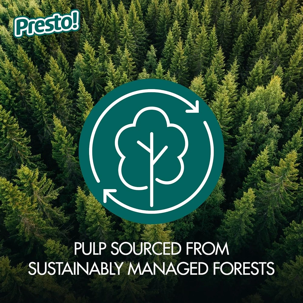 SHIPMENT CONTAINS: 12 Huge Rolls (2 packs of 6 rolls each) with 158 2-ply sheets per paper towel roll MORE SHEETS PER ROLL: Equal to 38 Regular Rolls (based on a standard roll with 49 sheets) STRONG & ABSORBENT: Up to 75% more absorbent versus leading 1-ply brand GREENCIRCLE CERTIFIED: Certified Energy Savings verifies product energy savings of over 10% in the use-phase compared to similar products FLEX-A-SIZE: Multiple tearable sheet sizes for customized clean up and less waste TRY PRESTO: If you like Bounty Paper Towels, we invite you to try Presto Paper Towels Includes 12 Huge Rolls (2 Packs of 6 Huge Rolls) of 158 2-ply sheets per roll, 12 Huge Rolls = 38 Regular Rolls (based on a regular roll with 49 sheets)