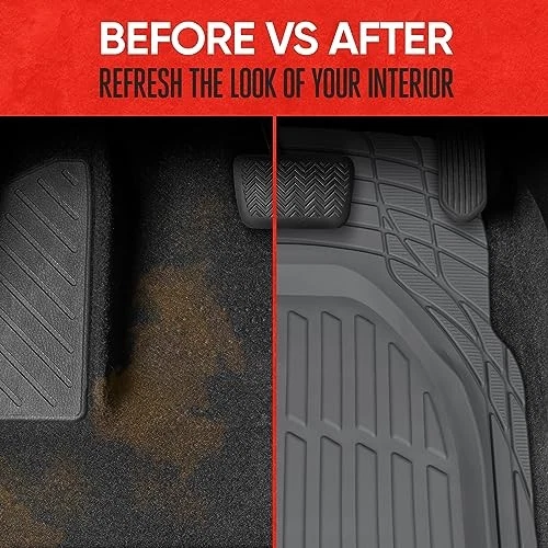 USA Stock Free Shipping 1-5 Days Fast Delivery Trusted seller FlexTough Floor Mats for Cars, Black Deep Dish All-Weather Car Mats, Waterproof Trim-to Fit Automotive Floor Mats for Cars Trucks SUV, Universal Floor Liner Car Accessories Product Description GENUINE FLEXTOUGH CAR FLOOR MATS - 's FlexTough car floor mats provide maximum all-weather protection for your car's interior from snow, rain, and mud UNIVERSAL FIT - Designed to fit most vehicles, these flexible rubber floor mats mold to the shape of your car's interior. Front Measurements: 27" L x 20" W, Rear Mesurements: 51" L x 14" W HEAVY-DUTY RUBBER - Built with a proprietary rubber blend, our floor mats for cars are made to last and always protect your vehicle interior without deforming or cracking TRIM TO FIT DESIGN - The trimmable shape of our universal automotive floor mats fits most vehicles. You can further trim the floor mats to your vehicle's specifications EASY TO CLEAN - Spills, dirt, and stains wipe right off these all-weather car floor mats. Just use some soap and water whenever cleaning is needed Shipping Returns Payment Shipping Shipping is FREE to all addresses other than APO/PO boxes in the lower 48 states. All our stock ships from US-based warehouses. Shipped via USPS or UPS (depending on location and package weight) Unless stated otherwise, all orders will ship within 24-72 hours of your payment being processed. Check our feedback to see the great reviews of FAST shipping we offer. Returns Seller does not accept returns Payment We currently accept payment via eBay managed payments only. Once payment is cleared, we will dispatch your shipment within 1-3 business days. Please refer to the "Shipping" tab for more information regarding shipping speed to your destination.