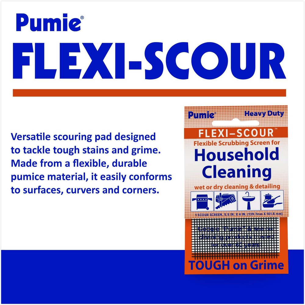 PACK OF 3 HEAVY-DUTY SCOURING SCREENS – This value pack includes 3 highly abrasive scouring screens with the cleaning power of a flexible pumice stone, perfect for tackling the toughest stains where even harsh chemical cleaners fail. Designed for powerful scrubbing without the need for active chemicals or harsh detergents, these screens are safe for daily use on multiple surfaces. Ideal for removing stubborn mineral buildup, rust, hard water stains, lime scale, and grime from toilets, sinks, bathtubs, and more—delivering professional-grade results while maintaining surface safety. FLEXIBLE MESH SCOURING PAD – The Pumie Flexi-Scour Cleaning Pad easily bends and conforms to both flat and curved surfaces, making it ideal for scrubbing hard-to-reach areas and irregular shapes. Its versatile, cut-to-size design works on sinks, tubs, tiles, bathroom fixtures, grills, and more—effectively removing tough dirt, grime, mineral deposits, and stains without harsh chemicals. Simply glide the pad back and forth for powerful, mess-free cleaning. Easy to rinse and reusable, this multi-surface scrub pad is perfect for quick touch-ups or deep cleaning tasks. SAFE & GENTLE CLEANING – The Pumie Flexi-Scour Mesh Pad delivers powerful stain removal while remaining gentle on hands and safe for a wide range of surfaces. This non-toxic, skin-friendly scrub pad easily tackles tough stains on porcelain bowls, sinks, tubs, tiles, and more—without the need for harsh chemicals or abrasive cleaners. Designed for mess-free handling, it’s simple to use: just grab, scrub, and rinse for sparkling, chemical-free results you can trust. MULTI-PURPOSE FLEXIBLE SCRUBBING SCREEN – Take on the toughest messes with ease using this versatile scrubber, perfect for removing rust, paint, mineral deposits, grease, and burnt-on food from a wide range of hard surfaces. Ideal for eliminating stubborn toilet bowl rings, its flexible design conforms to curved shapes and reaches tricky spots under the rim. Great for grills, tile grout, swimming pools, tubs, sinks, and more, this durable cleaning screen delivers powerful yet gentle scrubbing for spotless results in kitchens, bathrooms, and outdoor areas. CONVENIENT & VERSATILE CLEANING PADS – Each flexible scouring mesh pad measures 5.5" x 4" and is built for durability and effortless cleaning. Easily foldable to reach tight corners and awkward spaces, these pads work brilliantly wet, dry, or with soapy water. Unlike traditional scratch pads or harsh abrasives, they retain their strength and scrubbing power through multiple uses, delivering consistent results. Perfect for kitchens, bathrooms, grills, outdoor furniture, and more, these reusable pads provide a reliable, mess-free cleaning solution for everyday tasks. pumice stone toilet bowl cleaner, scouring stick, pumice stone for cleaning, pumice stone for toilet cleaning, toilet pumice stone with handle, toilet pumice stone, pumie scouring stick, pumice stone for toilet, scouring stick for toilet, toilet pumice, pumie scouring stick for toilet, pumice stones, puming cleaning stone, toilet bowl cleaners, cleaning supplies, toilet cleaner, toilet bowl cleaner, bathroom cleaner, pumice stone, splash toilet cleaner, oven cleaner heavy duty, household cleaning, splash toilet bowl cleaner, hard water stain remover, rust remover, kitchen cleaner, toilet scrubber, cast iron cleaner, toilet tank cleaner, the works toilet bowl cleaner, scouring stick for stove, mr pumice, toilet bowl scrubber, method toilet bowl cleaner, toliet bowl cleaner, bathroom tile cleaner, cleaning stick, toilet cleaning, iron out rust stain remover, crazy clean toilet bowl cleaner, rust stain remover, pumistone for toilet, mr pumice, toilet ring remover, toulet bowl cleaner, non toxic toilet bowl cleaner, toilet cleaners, stove cleaner heavy duty, toilet stone cleaning block, rust cleaner, pool cleaner, toilet stain remover heavy duty, toilet bowl stain remover, toilet stain remover, best toilet bowl cleaner, pumice stone, pumice stone toilet bowl cleaner, pumice stone toilet bowl cleaner, scouring stick, pumice stone for cleaning, pumice stone for toilet cleaning, toilet pumice stone with handle, toilet pumice stone, pumie scouring stick, pumice stone for toilet, scouring stick for toilet, toilet pumice, pumie scouring stick for toilet, pumice stones, pumice cleaning stone, toilet bowl cleaners, cleaning supplies, toilet cleaner, toilet bowl cleaner, bathroom cleaner, splash toilet cleaner, oven cleaner heavy duty, household cleaning, rust remover, kitchen cleaner, toilet scrubber