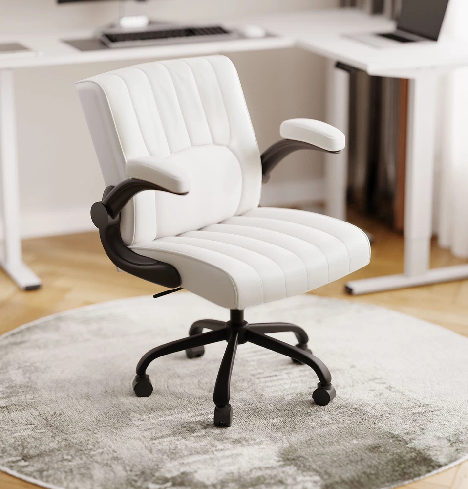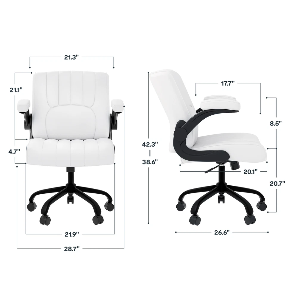 【 Chair with Different Options 】Our chairs come with various selections, including seat cushion sizes, weight capacity, and armrest designs. Opt for a larger cushion for more space or a chair without armrests to save room. 【 Versatile Home Office Chair 】You can use the chair as a computer chair, gaming chair, office chair, or task chair to meet diverse needs. Plus, the wheels are compatible with surfaces like carpet, tile, and wood, ensuring smooth and effortless mobility. 【 ECO Pet-Friendly Leather 】The desk chair’s surface is covered with premium PU leather, offering excellent waterproof and wear-resistant properties. Unlike fabric, it’s easy to clean with a damp cloth, providing both durability and convenience. 【 Sturdy Base 】Designed with a sturdy engineered wood seat base, this home office chair ensures reliable weight-bearing and stability, giving you peace of mind when using it. 【 Versatility 】Enhance your work or leisure experience with this multi-functional chair. Featuring 3.7 inches of height adjustment, a 360-degree swivel, and a 30-degree tilt angle, it offers customizable settings for maximum comfort. Details: Product Height: 38.6" - 42.3" Product Dimensions: 26.6" D× 28.7" W× 42.3"H Adjustable Seat Height: 20.7" - 24.4" Weight Capacity: 280 lbs Lifting Mechanism: Gas Spring Seat Material: Upgraded Foam Frame Material: PU Leather Special Features: Comfy Leather Cushion, Adjustable Height, Reliable Weight Capacity, Chair for Men and Women, Suitable for Adults and Teens