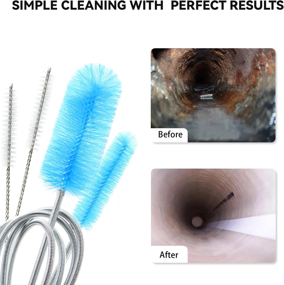Store New Arrivals Add to Favorite View Feedback Contact Flexible Drain Brush, 66 Inch Long Double Ended Hose Pipe and 58 Inch Tube Description Item model number DB-116 Unit Count 4.0 Count Product Dimensions 66"L x 1.2"W x 1.2"H Number of Items 4 Color Blue Brand Bozenu Material Stainless Steel Country of Origin China Handle Material Stainless Steel Item Weight 1.76 ounces Shape Round Surface Recommendation Floor, Tile, Plastic, Stone Included Components Handle Special Feature Long Handle, Portable, Reusable, Bagged, Hanging Loop Specific Uses For Product Bottle Manufacturer Bozenu You will get 1 pcs 66" dual-ended drain brush with 0.6" and 1.2" diameter bristle heads, 1 pcs 58" pipe brush with 0.5" diameter bristle head, 2 pcs 8" straw cleaner brush with 0.4" diameter bristle head. These premium drain brushes are made of the strongest material which is food grade. It's durable and will not rust. The bristles are made of nylon which is both resistant and easy to clean. Get around any surface or maneuver any depth. Simply insert it into the area to be cleaned, swirl and wash. With the long, soft but durable nylon bristles, it can be used to clean each size of pipe you have and will not damage the inside of tube. Flexible drain brush works great at cleaning around the stopper and will reach the u bend with no problems Works great at cleaning around the hard-to-reach narrow pipes or tubes. Perfect cleaning tools, ideal for all aquarium filter, fish tank, feeding tube, refrigerator drain, lily pipe, shower sink drain cleaning, hummingbird feeder. Product Description ABOUT US We offer the best prices around on high quality products. Our E-store includes media such as books, movies, music and games while offering electronics, toys, sporting apparel, clothing, tools, general home, garden items and more. SHIPPING We are always working hard to ensure your package arrives as soon as possible. Please understand that some factors like weather, high postal traffic, and the performance of shipping companies are outside of our control. We offer free shipping to the lower 48 states and ship within 5 business days of payment, usually sooner. We do not accept P.O. Boxes. Please provide a physical address. RETURNS We offer a 30-Day Return Policy on items which you are not completely satisfied with. You have the option for a full-refund or an exchange of the item. No returns are available on items shipped outside of the USA. PAYMENT We accept PayPal. CONTACT US This page content is yet to come Please ad us to your favorite seller and visit again later Thank You CUSTOMER SATISFACTION We try our very best to make sure every customer is completely satisfied. If there's a problem, message us! We're happy to help.