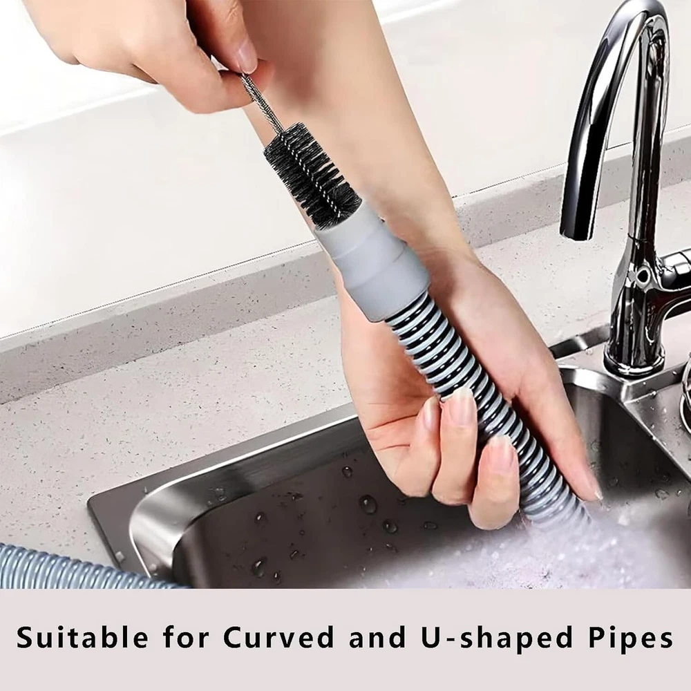 Flexible Extra Long Drain Brush Set 61" Pipe Cleaner & 17.7" Sink Unblocker Brus