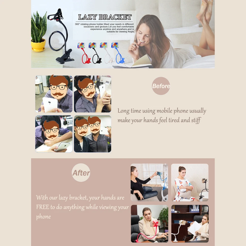 Flexible Lazy Arm Phone Mount Multifunctional Long Arm Clip Clamp for Desk Bullet Points: Free-Hand Control: This gooseneck phone holder lets your hands do anything with ease. Stream movies and music in bed or kitchen, or stay conveniently in touch at gyms and exhibitions. Firmly Secure: Personalize your viewing experience with ease by bending this gooseneck phone holder to any angle you desire. Its sturdy grip and anti-slip foam ensure your device stays safe and secure while you enjoy hands-free convenience. Wide Range Of Uses: Our gooseneck phone holder effortlessly adapts to your device's size, making it widely fitting all smartphpeople up to 3.5 inches wide. Say goodbye to narrow cradles and hello to a secure fit for almost every brand. Heavy-Duty Metal and ABS: Built with heavy-duty metal and ABS, this gooseneck phone holder boasts a reliable structure that's resistant to wear and scratches. You can rely on it to keep your phone stable and secure for a long time to come. Practical And Thoughtful Gift: Give your loved people a daily dose of surprise with this gooseneck phone holder; a versatile viewing stand that makes for a practical and thoughtful gift, sending care and blessings. Our holder allows your hands to do anything freely while securing your device firmly! Suitable for any smartphone with a width not exceeding 3.5 inches. Not easily deformed. Material: metal and ABS Style: Cartoon Model: Clamping type lazy person bracket Applicable scenarios: desktop, bedside, car use list: gooseneck phone holder x1 1.You can make a Credit payment via Paypal.Paypal will let you use MasterCard,Visa to pay. 2.Payment should be completed within 5 days after auction closed, or unpaid dispute will be filed for an closing auction.An unpaid case will be filled after 4 days. ● We strive for 100% customer satisfaction ! ● Positive Feedback is very important to us. ● We hope that you contact us immediately BEFORE you give us neutral or negative feedback, so that we can satisfactorily address your concerns. ● We promise to offer the lowest price and high quality produce. Dear buyers : ● Welcome to my store ! ● Your satisfaction is our top goal,we appreciate your patronizing. ● If you have any questions, please contact us before leave negative or neutral feedback, we will try our best to solve the issue to your satisfaction, thanks ! ● If you are satisfied with our service, please rate the details of the transaction (Detailed Seller Ratings) on eBay. ● Please always talk to us via ebay Message. ● We appreciate your business and look forward to growing our e-Bay sales with satisfied customers.