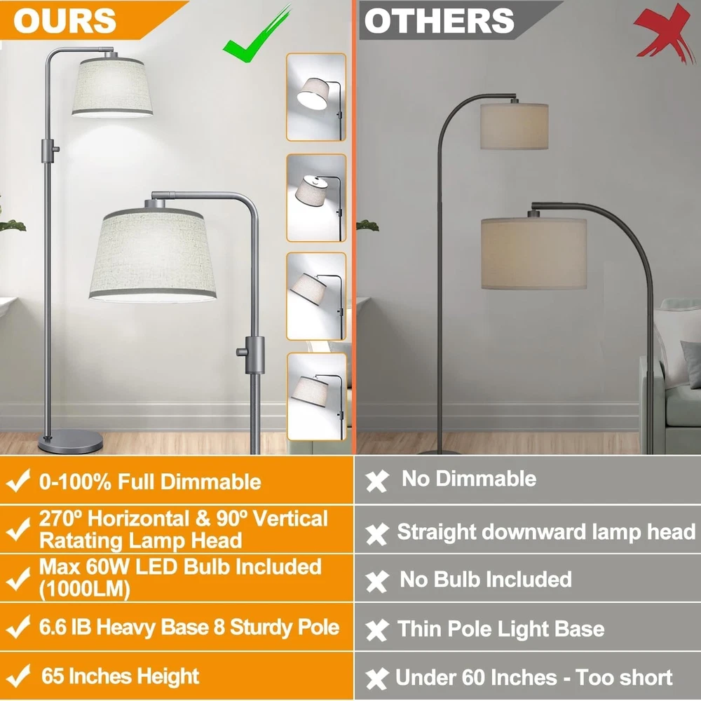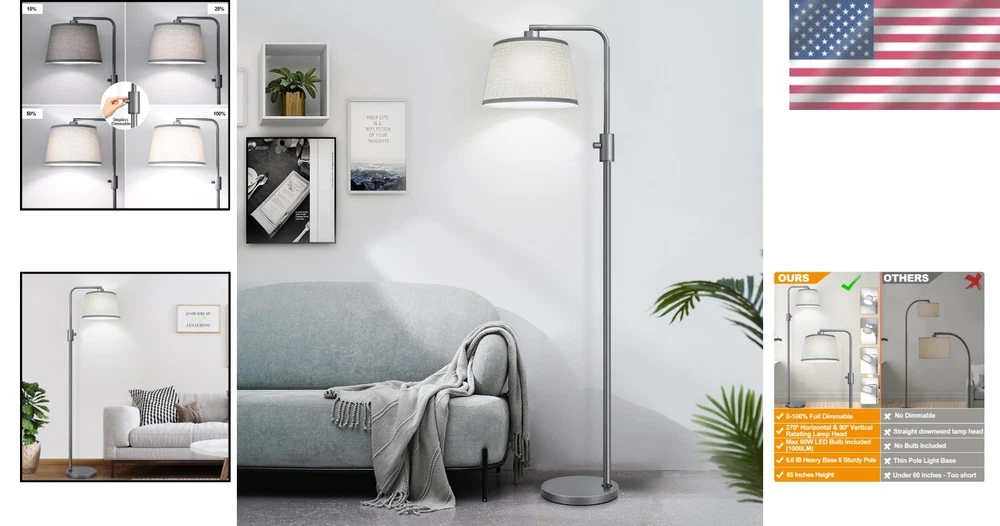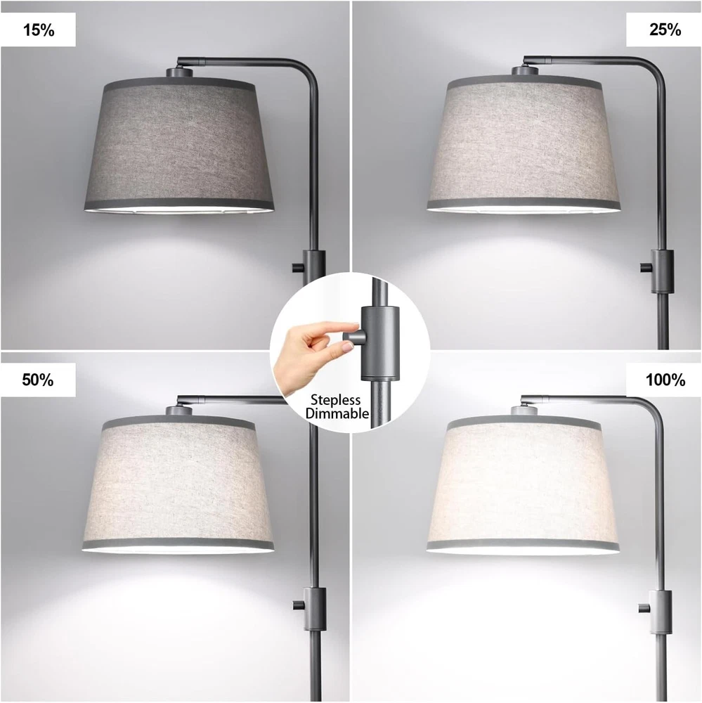 Power Source: Corded Electric Mounting Type: Floor Mount Is Waterproof: False Batteries Included?: No Wattage: 6 Watts Recommended Uses For Product: Reading Lighting Method: Led Material: Linen, Metal Room Type: Office, Living Room Number Of Pieces: 1 Light Source Type: Led Color: Space Gray-linen Shade Base Material: Metal Shape: Bulb Switch Type: Rotary Included Components: Bulb Included Lighting Technology: LED Brand: Unbranded Product Dimensions: 12"d X 12"w X 65"h Water Resistance Level: Not Water Resistant Installation Type: Freestanding UPC: Does not apply Batteries Required?: No Control Method: Touch Shade Material: Fabric Item Weight: 8 Pounds Bulb Base: E26 Medium Lamp Type: Floor Lamp Indoor/outdoor Usage: Indoor Brightness: 1000 Lumen Special Feature: Dimmable Voltage: 120 Volts Features: Adjustable Special Features: Dimmable Shade Color: Off White Type: Floor Lamp Specific Uses For Product: Reading Style: Modern gtin13: Does not apply Connectivity Technology: Usb