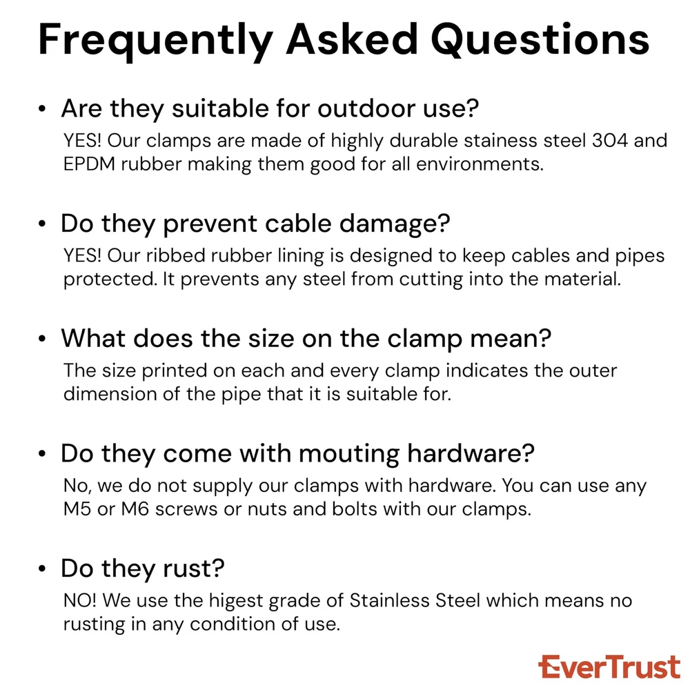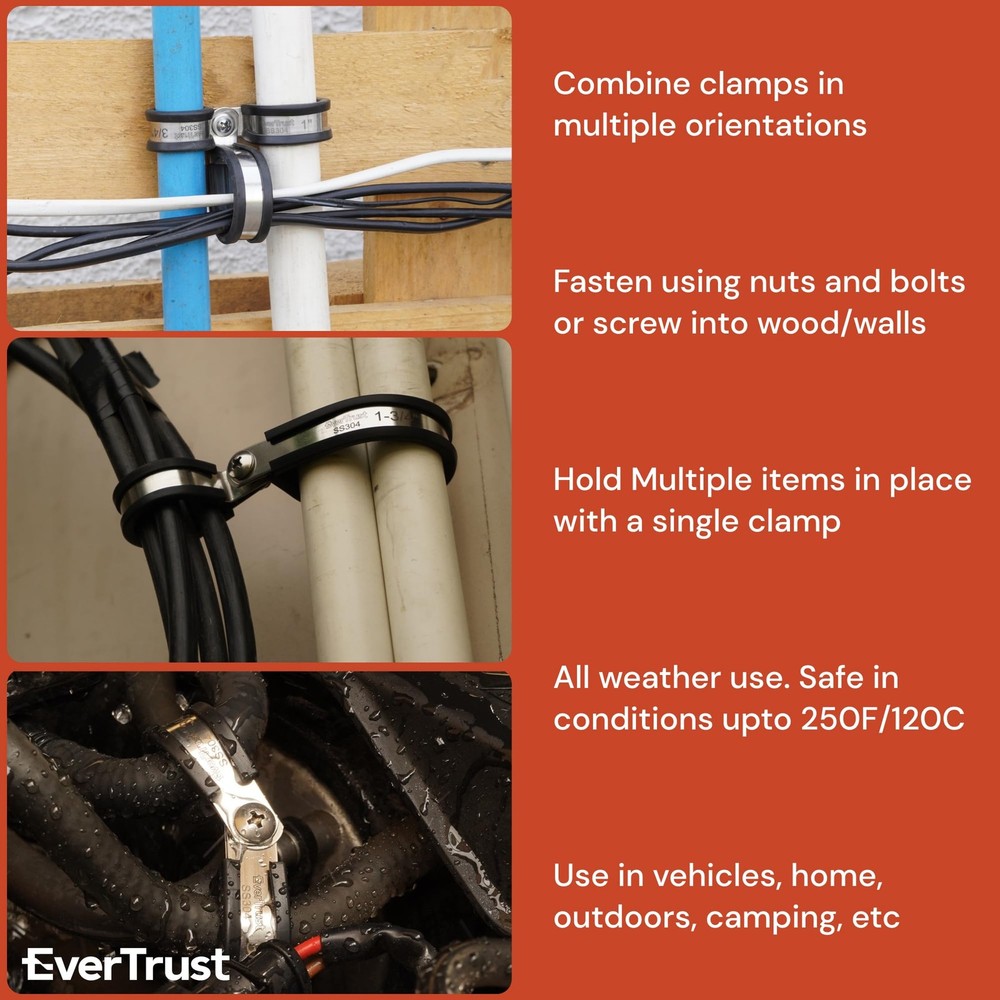 Introducing the FlexiGrip Cable Clamps, your ultimate solution for securing cables and pipes. Engineered with precision, our clamps feature a unique ribbed rubber lining that ensures a tight, secure grip without damaging the cables or pipes. Constructed from durable stainless steel, these clamps are designed to withstand the rigors of any indoor or outdoor setting. Whether tidying up your living space, organizing your garage, or managing vehicle cables, our GripTight Cable Clamps provide unmatched reliability and ease of use. Experience the confidence and peace of mind that comes with choosing , a leader in innovative engineering solutions. Easy Installation: Quick and simple to install, these clamps offer a reliable solution to manage all your cable and piping needs efficiently. Enhanced Grip Technology: Features a unique ribbed rubber lining designed for a firmer hold, ensuring that cables and pipes stay secure and protected. Durable Stainless Steel: Constructed with high-quality 304 stainless steel for maximum strength and longevity, even in challenging environments. Versatile Use: Perfect for organizing and managing cables and pipes in your home, garage, garden, kitchen, or vehicle. Provides a neat and tidy setup wherever needed. Engineered for Reliability: Trust in ’s engineering expertise to deliver a clamp that holds everything in place without any slippage or damage.