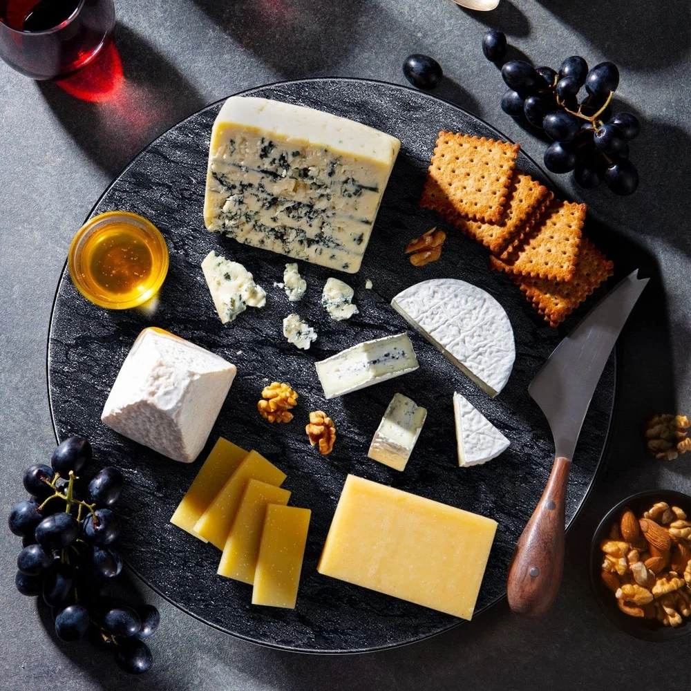 Flexzion Round Marble Cheese Board - 12 Inch Black Marble Serving Board for C...