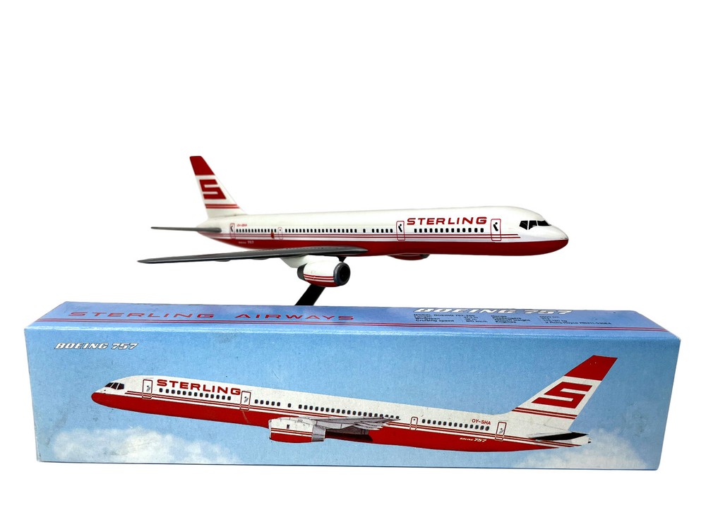 Flight Miniatures Sterling 757-200 – 1:200 Scale Model Airplane Elevate your collection with the 1:200 scale model of the Sterling 757-200 , a stunning representation of the iconic Boeing 757 in the distinctive livery of Sterling. Known for its long-range capabilities and efficiency, the Boeing 757 was a favorite of both airlines and passengers alike. This model captures all the intricate details of the aircraft, making it a must-have for aviation enthusiasts. ✈️ Sterling Livery: Features the airline’s recognizable livery with bold, clean lines and the Sterling logo, making this model stand out as a tribute to the airline’s fleet. ✈️ Accurate 757-200 Design: A true-to-life 1:200 scale replica of the Boeing 757-200, capturing its powerful engines, streamlined fuselage, and distinctive tail design. The model reflects the advanced design that made the 757-200 an industry favorite. ✈️ High-Quality Construction: Made from durable, precision-molded plastic, this model is built to last, with attention to detail that ensures it’s both visually striking and durable for display. ✈️ Custom Display Stand Included: Comes with a custom display stand, allowing you to proudly showcase this model in your home, office, or aviation-themed collection. ✈️ Model Dimensions: Approx. 10.5" long with a 7.5" wingspan (1:200 scale). The Sterling 757-200 model is an excellent addition to any aviation collection, offering a perfect replica of this popular aircraft in the iconic Sterling livery.