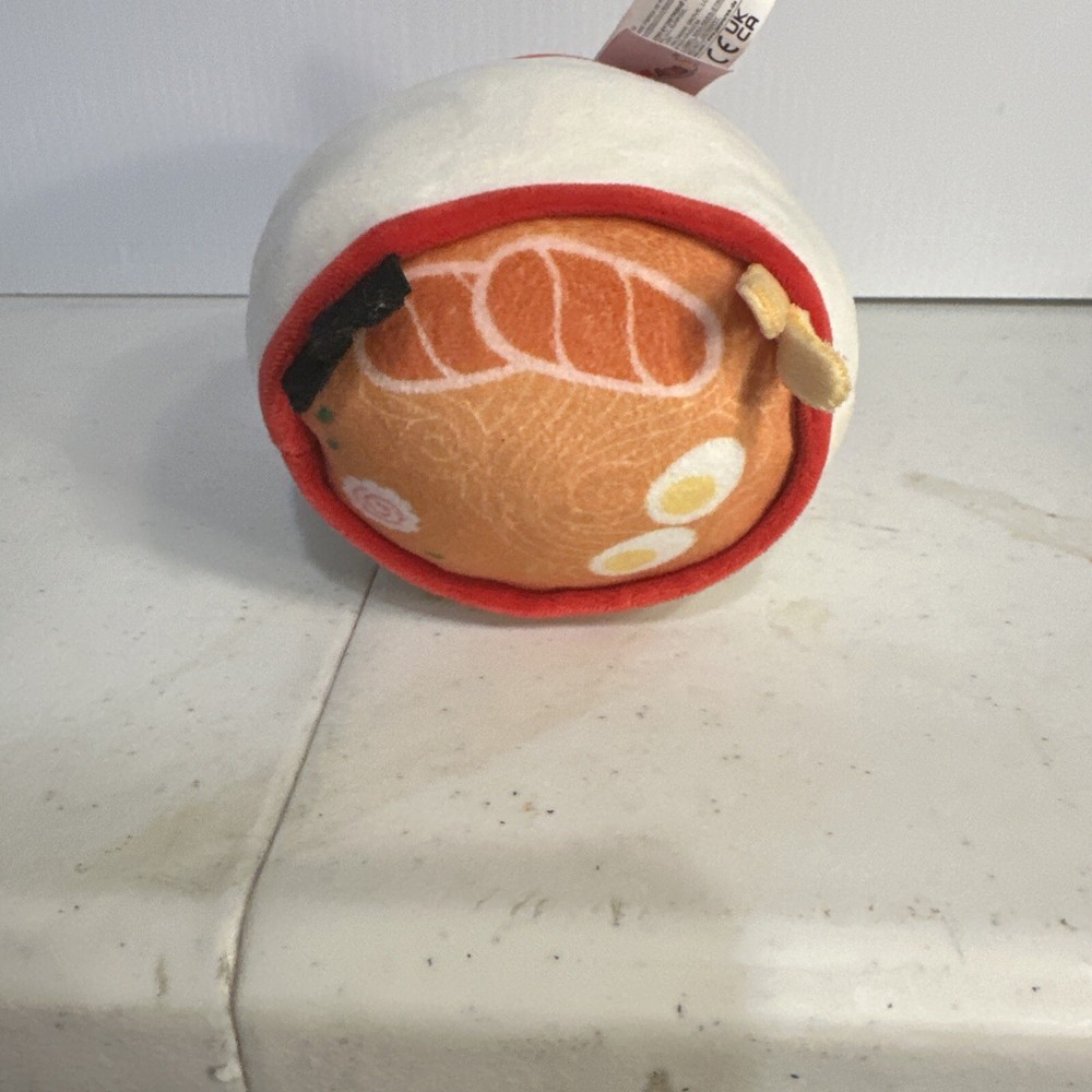 The Flip A Mallows Raisy Ramen Bowl & Shun Sushi Roll is a 2-in-1 plush toy by Kellytoy from 2022. This small 6" plush features a reversible design, with Raisy Ramen on one side and Shun Sushi Roll on the other. It is washable, making it suitable for all occasions and part of the popular Squishmallows character family.