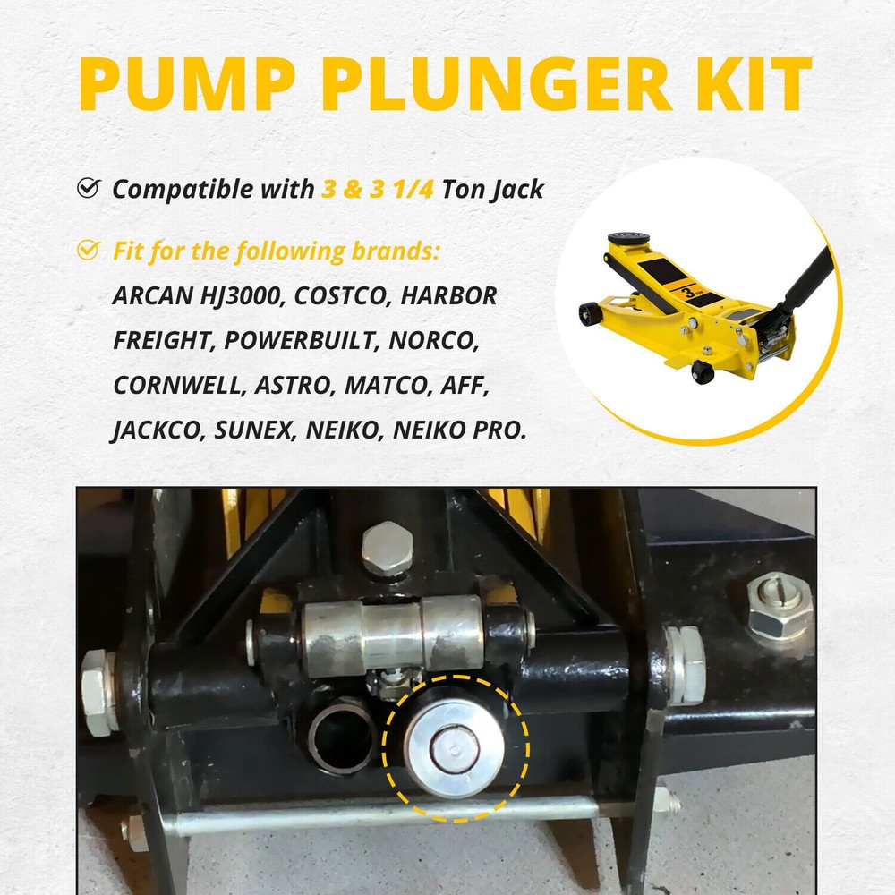 Floor Jack Low Side Pump Piston Kit for Harbor Freight Costco Arcan Matco Application: This Pump Piston Replacement Kit is compatible with 3 & 3 1/4 t. Jack. Fit for the following brand: ARCAN HJ3000, COSTCO, HARBOR FREIGHT, POWERBUILT, NORCO, CORNWELL, ASTRO, MATCO, AFF, JACKCO, SUNEX, NEIKO, NEIKO PRO. Direct Replacement: It is a perfect pump plunger replacement kit — “LOW SIDE” —(“smaller of the two plungers”). If you are looking at the floor jack from the rear (casters) the plunger listed here stays to the left. Note: The plunger diameter is smaller than the one to the right of it. Item Size: Pump plunger: 0.58"-x 2.88 Long with seals, Cylinder: 1.05" x 2.60" long. Capacity per Stand: 3 1/2. Superior Material: This Pump Piston Replacement Kit is made of high-quality steel, copper and rubber. With strong durability, corrosion resistance and anti-rust performance. Better quality allows it to be used for a longer time. Satisfaction Guarantee: We are committed to providing excellent products and the best service for our customers. If you are not satisfied with the product, you can simply return it. We support a 60-day full refund on return and a 12 month's warranty. Package Details: 1 * Pump Plunger (with 2 seals), 1 * Cylinder, 1 * Spring, 1 * Copper Packing 1 * Retainer. Instruction manual is also included Payment Shipping Return & Warranty Leave feedback Contact us Payment 1.We accept PayPal payment and many other payments. Items will be shipped within 1 business day of receiving full payment. Shipping 1.All items will be shipped out in 1 business day,no expedited service available. 2.Our items will be delivered within 4-6 business days. 3.We have multiple warehouses in US, and will choose the nearest one for shipping, according to your address and our inventory Return & Warranty 1. 60 Days Free Returns, please notify us within 60 days after you've received your purchased item. 2. All return requests must be submitted through your eBay account. 3. Return shipping shall be the responsibility of the buyer. We pay the shipping when it is our fault. 4. Items to be returned must be in resalable condition. 5. All returns are for refund ONLY. No exchange accepted. Leave feedback 1.If you are not satisfied for any reasons, please do not be so quick to leave negative/neutral feedback. We work hard to make sure EVERY CUSTOMER 100% SATISFIED and resolve any problems for you and always leave positive feedback to all our customers. 2.If you are satisfied with the product you received, please kindly leave us a positive feedback and 5 scores DSR. Thanks! Contact us 1.Any Questions,Just feel free to contact us on eBay.We will reply you in 1-2 business day.