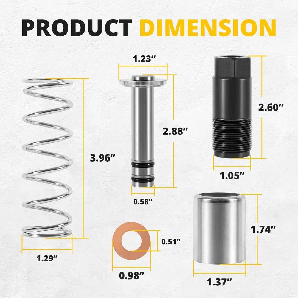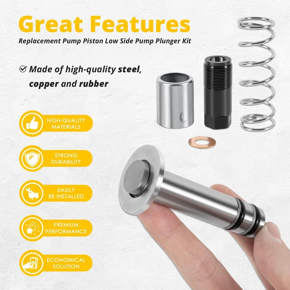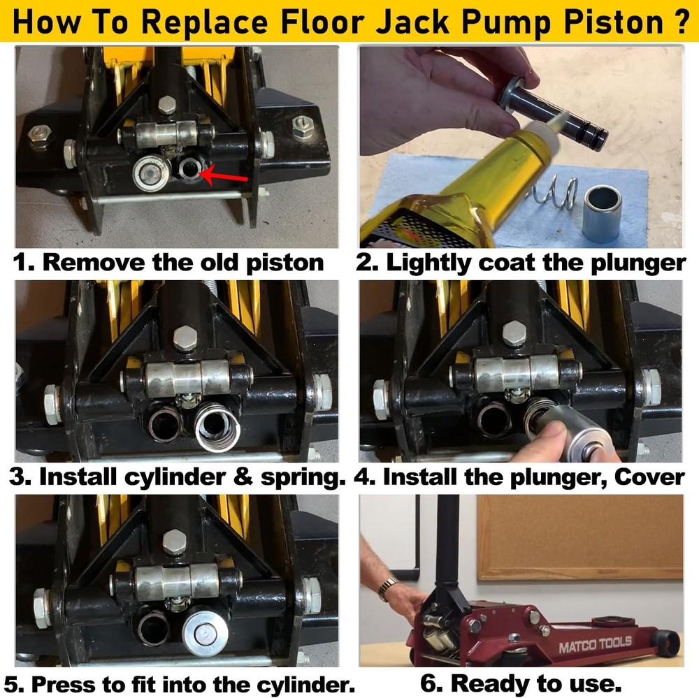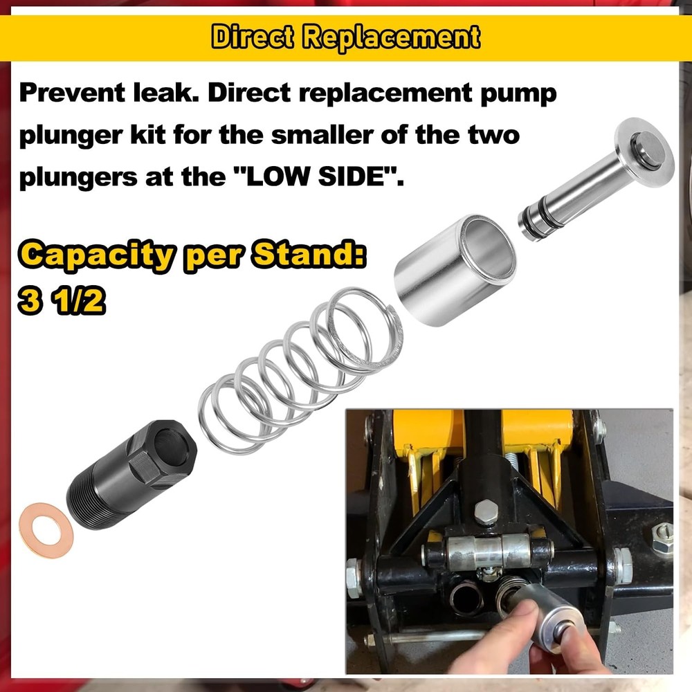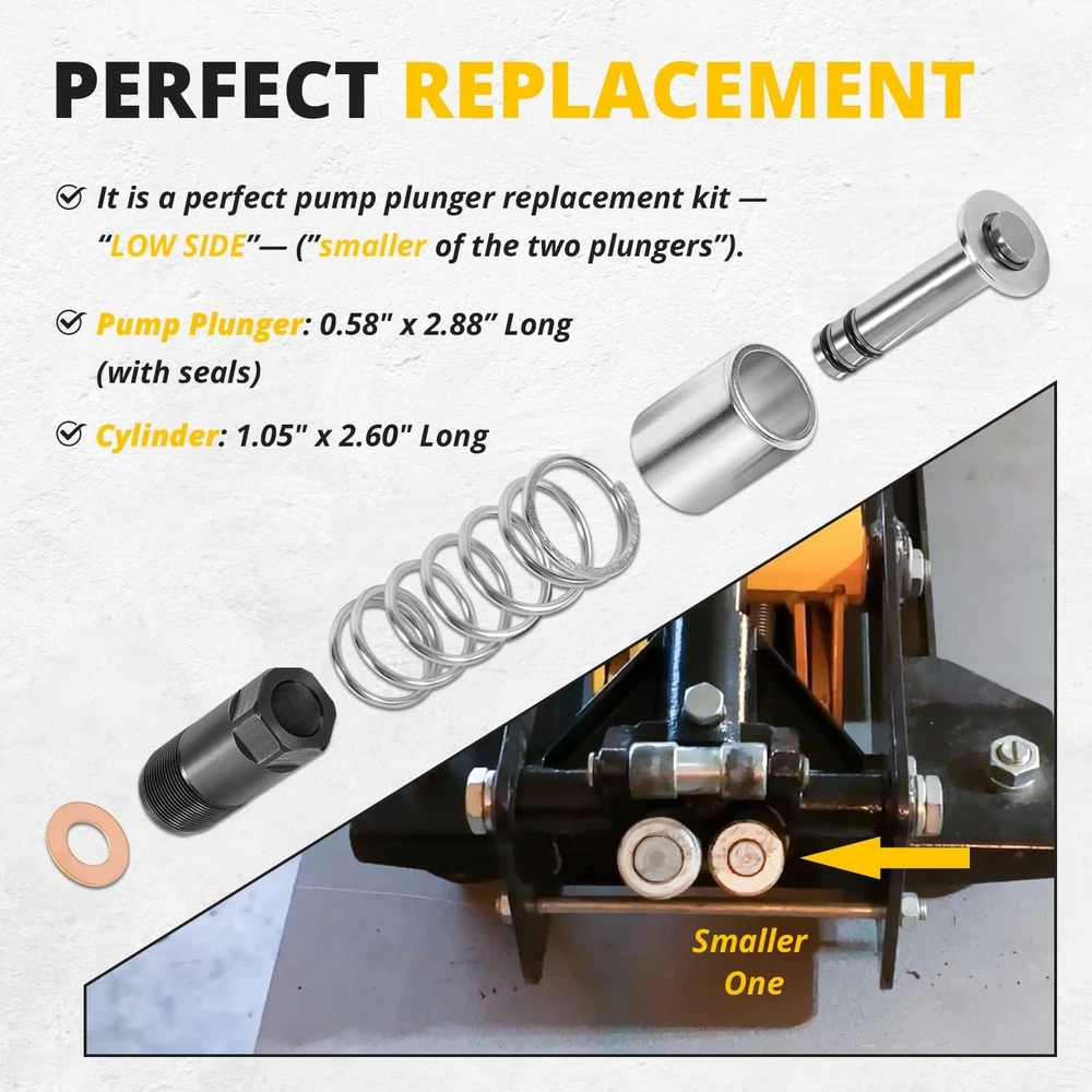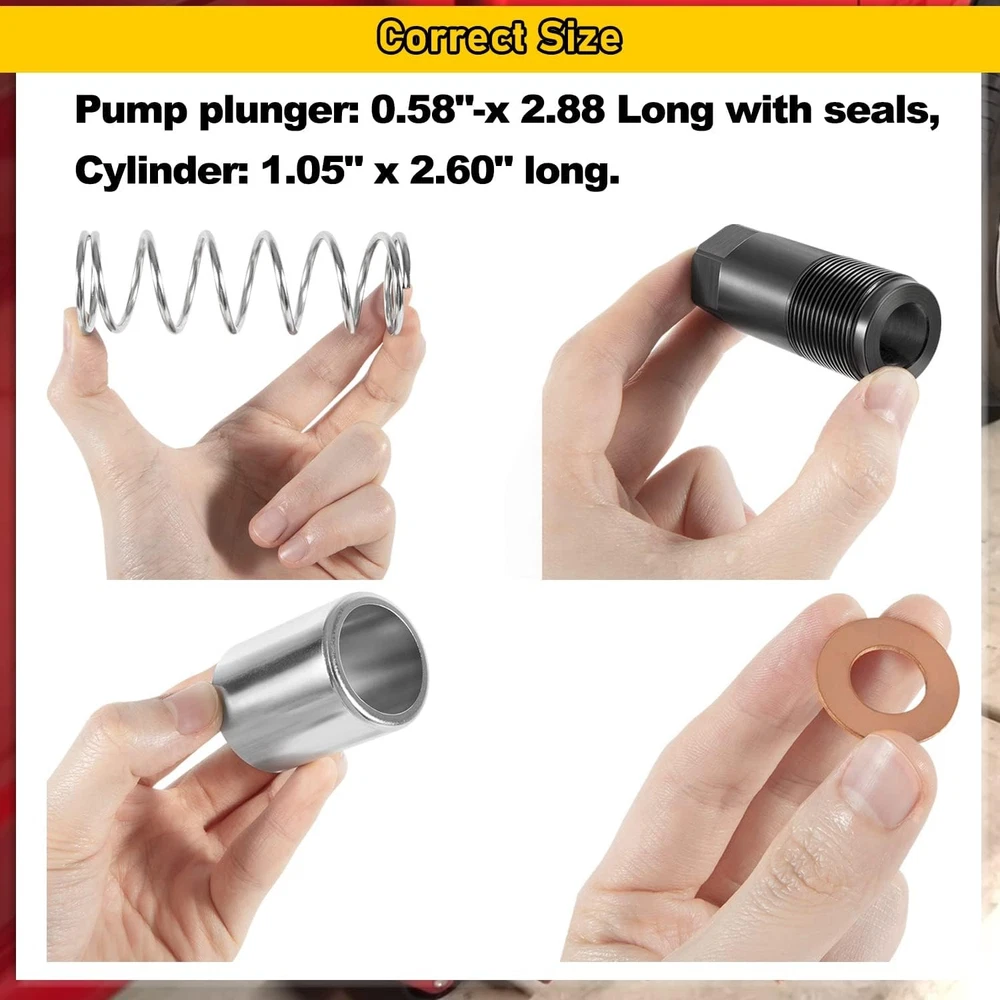 Floor Jack Low Side Pump Piston Kit for Harbor Freight / Costco / Arcan / Matco Wide Application: This Pump Piston Replacement Kit is compatible with 3 & 3 1/4 t. Jack. Fit for the following brand: ARCAN HJ3000, COSTCO, HARBOR FREIGHT, POWERBUILT, NORCO, CORNWELL, ASTRO, MATCO, AFF, JACKCO, SUNEX, NEIKO, NEIKO PRO. Perfect Replacement: It is a perfect pump plunger replacement kit — “LOW SIDE” —(“smaller of the two plungers”). If you are looking at the floor jack from the rear (casters) the plunger listed here stays to the left. Note: The plunger diameter is smaller than the one to the right of it. Superior Material: This Pump Piston Replacement Kit is made of high-quality steel, copper and rubber. With strong durability, corrosion resistance and anti-rust performance. Better quality allows it to be used for a longer time. Package Includes: You will get 1*Pump Plunger (with 2 seals), 1*Cylinder, 1*Spring, 1*Copper Packing and 1*Retainer. Instruction manual is also included. Satisfaction Guarantee: If you're not satisfied with the tool, simply return it for a full refund in 60 days.If you have any questions, please feel free to contact us and we will reply you as soon as we can. 1. Payment methods accepted: Payoneer. Our payoneer account allows you to pay by credit card, debit card and your paypal balance. 1. We ship items to Your ebay address.Please make sure your ebay address is correct before you pay, cause it cannot be changed once the order shipped out. 2. All of our items are shipped from our Warehouse in USA. 3. Please feel free to contact us by ebay "Contact member" if you cannot get your order on time. 1. Return to us within 60 days from the delivery date for exchange or refund. Refund will be given as Money back or item exchange (buyer's choice). 2. Return shipping fee is the responsibility of buyer unless the return is a result of our mistake. And all NON-seller mistake returns for refund are subject to 20% re-stocking fee. 3. If you need return, please contact our customer service representative, let us know the detailed problem and send us some pictures for confirmation. 1.Please contact us via ebay using"Contact member". We will respond within 24hours or less.Thank you for your understanding. 2. We maintain high standards of excellence 5-stars and strive for 100% customer satisfaction! Positive Feedback is very important to us. 3. Pls contact us first before you leave Neutral or Negative feedback. We will do our best to solve the problem, thanks!