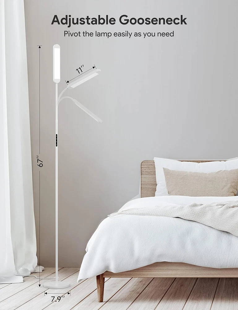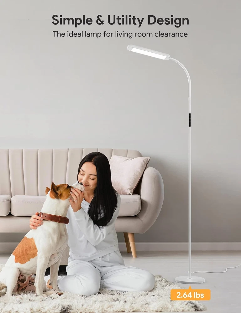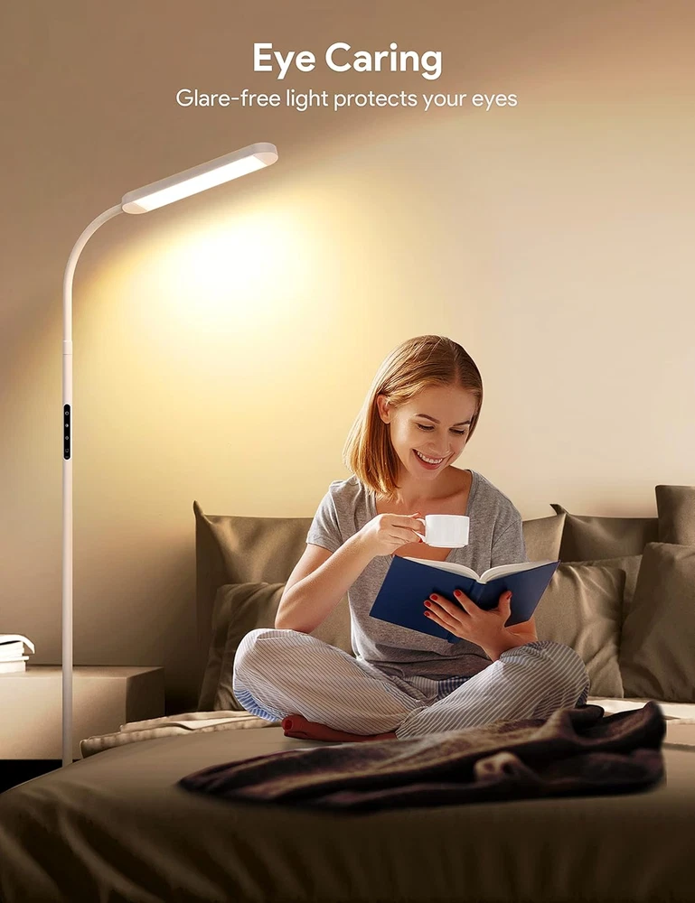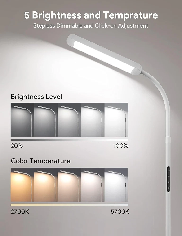 Store New Arrivals Add to Favorite View Feedback Contact Floor Lamp, LED Floor Lamp with Remote, 5 Colors & 5 Brightness & Stepless Adjustable Standing Lamp Work with Wall Switch,1H Timer, Memory Function, Gooseneck for Living Room Bedroom, White Description Item model number ME-FL01 Light Source Type LED Style Modern Number of Items 1 Power Source Corded Electric Number of Light Sources 1 Control Method Remote Batteries Included? No Lighting Method Adjustable Lamp Type Floor Lamp Number of Pieces 1 Room Type Living Room Product Dimensions 7.87"D x 7.87"W x 67.72"H Material LED bulbs, Plastic, Metal Installation Type Freestanding Controller Type Remote Control Finish Type Lacquered Specific Uses For Product 1 hour timer, Work with button and remote (2 AAA batteries include), Stepless dimming & color changing + 5 step control, Work with wall switch/smart plug, Memory function, 5 brightness levels, 5 color modes, Flexible gooseneck, Closable indicator light, Night light, Stable base Bulb Features Dimmable & Adjustable color Country of Origin China Water Resistance Level Not Water Resistant Batteries Required? No Item Weight 2.3 Kilograms Connectivity Technology USB Special Features 1 hour timer, Work with button and remote (2 AAA batteries include), Stepless dimming & color changing + 5 step control, Work with wall switch/smart plug, Memory function Special Feature 1 hour timer, Work with button and remote (2 AAA batteries include), Stepless dimming & color changing + 5 step control, Work with wall switch/smart plug, Memory function Part Number KITCHEN-412 Shade Color White Mounting Type Wall Mount Color White Wattage 12 watts Batteries 2 AAA batteries required. Voltage 230 Volts (AC) Recommended Uses For Product Reading Shade Material Metal light pole and shade, plastic light panel Finish types Lacquered Included Components 1* Floor lamp with bulbs, 1*Remote, 2*AAA Batteries, 1*Adapter, 1*User manual included Cable Length 393.6 Inches Switch Type Touch button control + Remote control ๐Ÿ“ ๐๐ซ๐ข๐ ๐ก๐ญ๐ง๐ž๐ฌ๐ฌ & ๐Ÿ“ ๐„๐ฒ๐ž-๐ฉ๐ซ๐จ๐ญ๐ž๐œ๐ญ ๐‚๐จ๐ฅ๐จ๐ซ๐ฌ: MediAcous floor lamp has 5 levels of brightness (20%-100%) and 5 color temperatures (2700k-5700k) to choose from, easily customize your lighting experience. Stepless dimmable and finger tap adjustment are both available. The LED floor lamp has sufficient brightness, while the light is soft and flicker-free, protecting your eyes ๐ˆ๐ง๐ญ๐ž๐ฅ๐ฅ๐ข๐ ๐ž๐ง๐ญ ๐‘๐ž๐ฆ๐จ๐ญ๐ž & ๐“๐จ๐ฎ๐œ๐ก ๐‚๐จ๐ง๐ญ๐ซ๐จ๐ฅ: Remote and Touch control both can turn the floor lamp on and off, adjust the brightness or color temperature as you wish. The remote control design allows you to easily control the standing lamp without leaving warm sofa or bed (within 49.2 ft/15 m). Lighting modes on the remote control can meet various lighting scenes such as reading, working, entertainment, breastfeeding, and resting ๐…๐ฅ๐ž๐ฑ๐ข๐›๐ฅ๐ž ๐†๐จ๐จ๐ฌ๐ž๐ง๐ž๐œ๐ค ๐ƒ๐ž๐ฌ๐ข๐ ๐ง: 360ยฐ adjustable gooseneck allows the LED floor lamp head to rotate up, down, or sideways and helps direct the light to any place you need it. Smooth gooseneck design living room floor lamp matches easily with any home decor style ๐“๐ข๐ฆ๐ข๐ง๐  & ๐Œ๐ž๐ฆ๐จ๐ซ๐ฒ & ๐–๐š๐ฅ๐ฅ ๐๐ฅ๐ฎ๐  ๐€๐ฏ๐š๐ข๐ฅ๐š๐›๐ฅ๐ž: 1-hour timer function of this modern floor lamp reminds you to take a break in time, good for your eyes. This dimmable floor lamp can also be used as a night light. When using the wall plug (rather than the remote control or touch) switch to turn off the lamp, the memory function allows you to turn on the lights with one button while keeping the last use settings ๐’๐š๐Ÿ๐ž ๐ƒ๐ž๐ฌ๐ข๐ ๐ง & ๐„๐š๐ฌ๐ฒ ๐€๐ฌ๐ฌ๐ž๐ฆ๐›๐ฅ๐ฒ: The safe and stable base minimizes the potential danger of pets and children being tipped over. The assembly is very simple, following the instructions, you can install the LED floor lamp in 5 minutes without extra tools Product Description MediAcous Floor Lamp with More Humanized Design Work with Outlet Switches/Wall Switches---One Key to Light Up Your Comfortable Home When the LED floor lamp is turned on, use the outlet switch/wall switch to turn off the power of the lamp and turn on the power again with the outlet switch/wall switch to light the floor lamp. Closable Power Indicator Designed for People with Sensitive Eyes at Night Long press the first and second buttons on the light pole at the same time to turn off the power indicator that may be annoying during the night. Do the same operation again to turn on the indicator light to find the switch faster at night. Remote or Touch Control as You Like Remote control and touch control provide our customers with more control options and a better lighting experience. Shortcut buttons on the remote control help adjust the light to the desired mode faster. Night Light & 1H Timer & Memory Function Night lights provide soft yellow light and a 1-hour timer to help you turn the light off automatically. Trendy & Simple Look Modern Floor Lamp with Stable Base Design with a smooth gooseneck