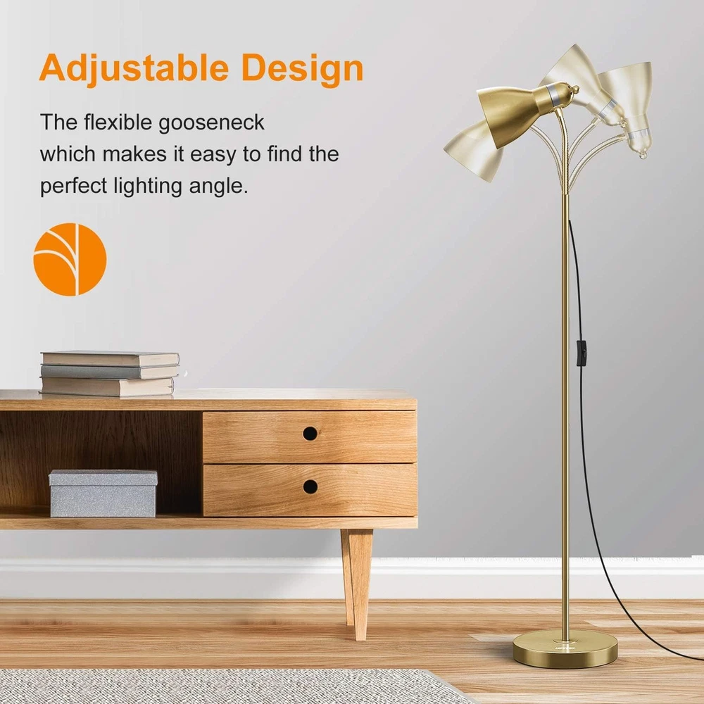 Item Weight: 7.5 Pounds Shape: standing lamp UPC: 313034541594 Color: Gold Bulb Shape Size: A19 Special Feature: adjustable Shade Color: Gold Number of Items: 1 Bulb Base: E26 Installation Type: Screw In Part Number: 004-MFL-03-GO Base Material: Metal Shade Height: 53.15 Inches Shade Material: Metal Is Waterproof: False Mounting Type: Floor Mount Recommended Uses For Product: Decoration Special Features: adjustable Finish types: Brushed Type: Does not apply Indoor/Outdoor Usage: Indoor Power Source: Corded Electric Specific Uses For Product: Plant grow, Living Room, Bedroom, Study Room, Office, Decoration Item model number: UF2012 Light Source Type: LED light, grow light, etc (40W Max) Style: Modern Number of Pieces: 1 Number of Light Sources: 1 Control Method: Touch Wattage: 40 watts Room Type: Office, Living Room Batteries Included?: No Is Cordless?: No Material: Metal Water Resistance Level: Not Water Resistant Finish Type: Brushed Lighting Method: LED, halogen gtin13: 313034541594 Connectivity Technology: USB Brand: Does not apply Lamp Type: Floor Lamp Connectivity Protocol: Homeplug Product Dimensions: 8"D x 5"W x 58"H Controller Type: Push Button Voltage: 120 Volts Batteries Required?: No Efficiency: High Efficiency
