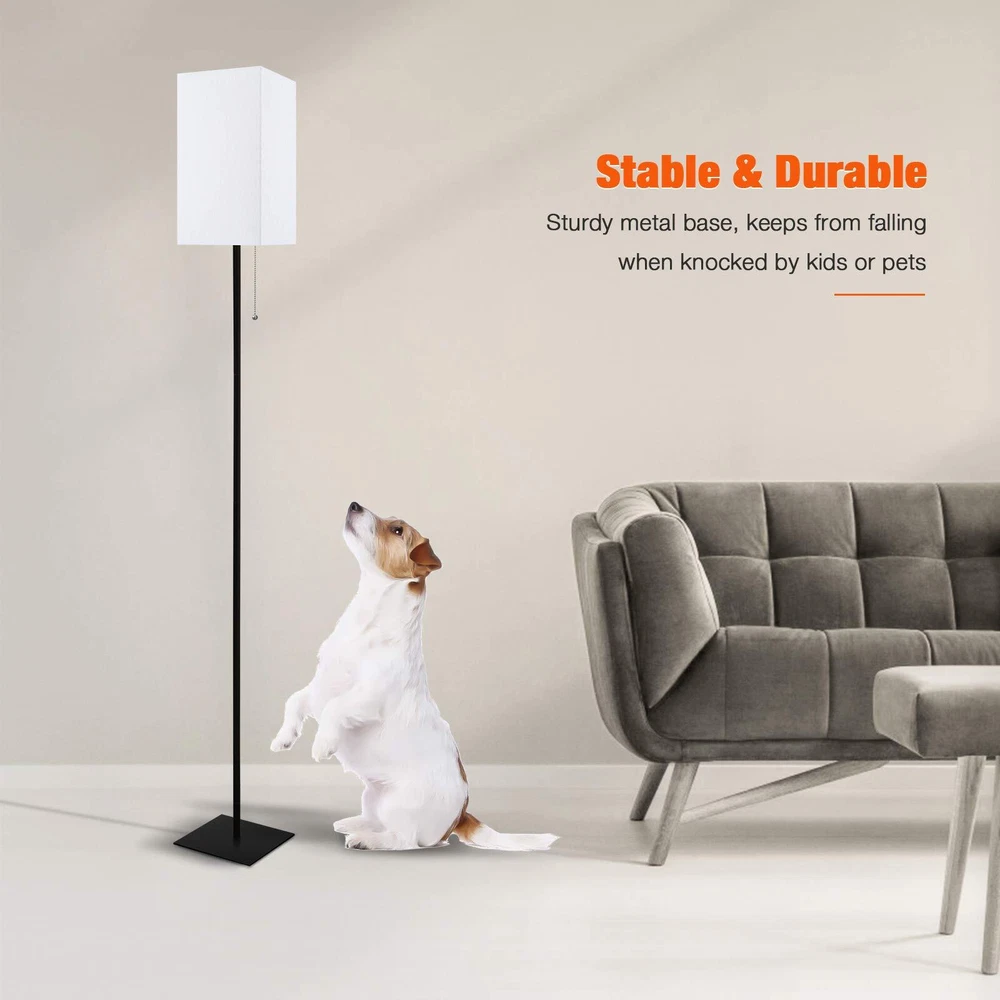 [Sturdy & Safe Design] The floor lamp has a well-weighted and sturdy metal base with non-slip cotton pads; it is not easy to tip over even if accidentally hit by children or pets, even on the carpet. [Energy Saving LED Bulb] The lamp includes a 9W 3000K warm white LED bulb equivalent to an incandescent bulb burning 60 watts; it uses less energy with a longer lifespan of more than 25000+ hours, reducing the electricity bill by up to 80%. The maximum compatible light source wattage is 60.00 watts, and no batteries are required; it provides a brightness of 800.00 lumen. [Comfortable Diffused Lighting] The tall floor lamp features a high-quality linen shade that softens and filters light into a diffused glow with no flickering and no buzzing; it provides a comfortable glow to protect your eyes with less irritation, making it easier to focus on activities like reading, working or sewing. The comfortable light also allows you to relax quickly. [Simple Modern Aesthetics] The simple and modern design of the floor lamp tall matches any styles of home decor; it can be placed in living rooms, bedrooms, offices, kids' rooms, guest rooms, or next to couches, providing the needs of brightness while serving as an elegant decoration in your home. The suitable size allows pole lamps for living rooms to stand in any corner or narrow area, making them space-saving. [Easy Tool-Free Assembly] The square floor lamp is easy to assemble in just 5 minutes without any tools required; simply insert all tubes and screw them firmly (remove the "cable wire protector" before installing the tubes), put the shade on the socket and tighten it with the socket ring, then install the LED bulb.