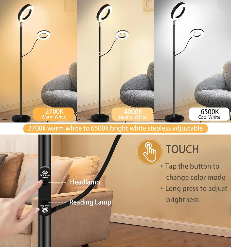Store New Arrivals Add to Favorite View Feedback Contact Floor Lamp for Living Room with 3 Color Temperatures,Super Bright Dimmable LED Lamps, Standing Lamp Tall with Remote Push Button, Adjustable Gooseneck Reading Lamp for Bedroom Office Description Item model number A9 Light Source Type LED Style Minimalist Number of Items 1 Power Source Corded Electric Number of Light Sources 2 Control Method Remote Batteries Included? No Lighting Method Adjustable Lamp Type led Number of Pieces 1 Room Type Living Room Switch Type Remote Product Dimensions 16.33"D x 4.4"W x 10.82"H Material Cast Iron, Iron Installation Type Freestanding Controller Type Remote Control Finish Type Painted Specific Uses For Product Reading, Decoration Indoor/Outdoor Usage Indoor Bulb Base B21S-4 Country of Origin China Batteries Required? No Item Weight 10 Pounds Connectivity Technology USB Special Features dimmable Special Feature dimmable Part Number A9 Shade Color Black Mounting Type Floor Mount Color Black Is Cordless? No Base Material Metal Is Waterproof false Shape Round Voltage 120 Volts Recommended Uses For Product Reading, Decoration Shade Material Plastic, Metal, Iron Finish types Painted Included Components Remote Control Size A Upgraded Lamp Head: The newly upgraded living room high light has a metal base that is heavy enough to be securely placed. The buttons on the lamp post only control both sides of the main light, and the on/off key of the reading light is on the remote control. There are two circular lamp heads that can be freely adjusted in angle, without flickering or blue light. Protect your and your family's eyes. (remote control does not contain batteries) Modern Floor Lamp with 3 Color Temperature :3 color temperature modern floor lamp: The main RGB vertical lamp includes an LED emitting surface, and the main lamp has adjustable temperature settings of 3 different colors: 2700K/4000K/6500K. You can easily change the color temperature (except for reading lights) through the remote control to set the overall atmosphere of the room. Different modes create different atmospheres to meet your daily needs. Floor Lamps for Living Room with Adjustable light: Gooseneck Reading floor lamp comes with a rotating head, assuring convenience for daily life. When you put the floor light behind your couch, you can adjust the lamp head to any angle you like, which is very proper for reading and working. Handy Push Button to turn on/off the lamp and change 3 different color temperatures. Corner Floor Lamp for Living Room Bedroom Study Room: It is very affordable and works great when you need a floor lamp for a dark corner. This floor light fits in any room from industrial to modern or traditional décor. Perfect for a living room floor lamp, bedroom floor lamp, kids room floor lamp, office floor lamp, appartment floor lamp, classroom floor lamp. Easy to Install: Easy to put together and included the 2 light head . You need to twist the poles together, insert them in the base.Pull out the light cord from the bottom to easily screw the light pole together . No need any tools to complete. Product Description ABOUT US We offer the best prices around on high quality products. Our E-store includes media such as books, movies, music and games while offering electronics, toys, sporting apparel, clothing, tools, general home, garden items and more. SHIPPING We are always working hard to ensure your package arrives as soon as possible. Please understand that some factors like weather, high postal traffic, and the performance of shipping companies are outside of our control. We offer free shipping to the lower 48 states and ship within 2 business days of payment, usually sooner. We do not accept P.O. Boxes. Please provide a physical address. For shipping outside of the continental USA, we only use eBay's Global Shipping Program.The item is shipped to KY and then sent to the rest of the world. International customers are responsible for all duties and taxes. Continue to check out in order to calculate costs for shipping the item to your country. Messages regarding eBay's Global Shipping Program MUST be directed at eBay EXCLUSIVELY. RETURNS We offer a 30-Day Return Policy on items which you are not completely satisfied with. You have the option for a full-refund or an exchange of the item. No returns are available on items shipped outside of the USA. PAYMENT We accept PayPal. CONTACT US This page content is yet to come Please ad us to your favorite seller and visit again later Thank You CUSTOMER SATISFACTION We try our very best to make sure every customer is completely satisfied. If there's a problem, message us! We're happy to help. WE ACCEPT Copyright © 2021 AutoDS. | All Rights Reserved