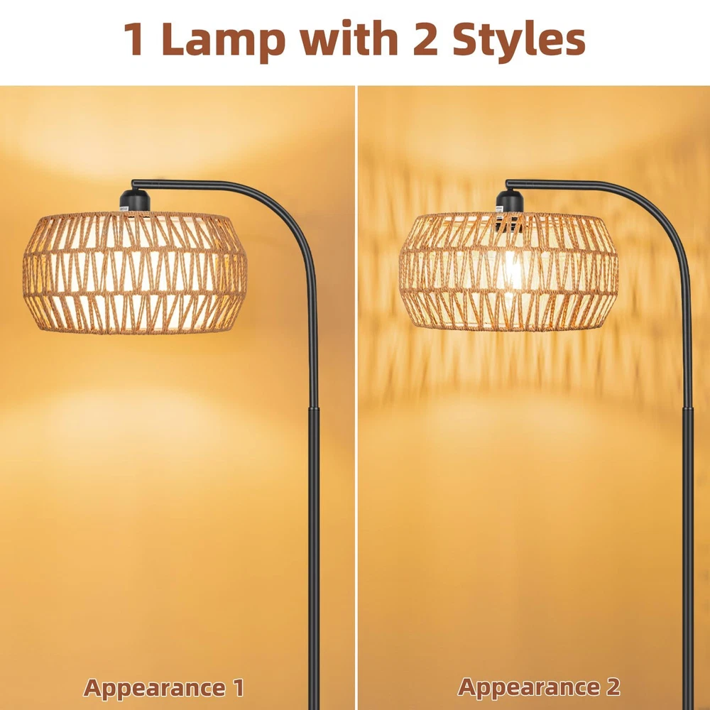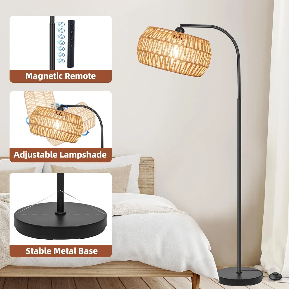 Dimming Brightness& Color: Our farmhouse standing lamp makes it effortless to tailor your lighting experience. With the included remote and dimmable bulb, you can easily adjust the brightness (from 10% to 100%) and fine-tune the color temperature (ranging from 2700K to 6000K) of this arch rattan lamp. Experience the benefits of mimicking natural sunlight, boosting mood, improving sleep, and increasing energy 1 Light with 2 Style Lampshade: Our reading boho lamp features a 360-degree rotation lamp head, allowing you to customize the lighting angle. The rattan lampshade emits a charming grid light effect, while the linen+rattan lampshade prevents light leakage, creating a warm and romantic atmosphere. You own 2 styles of home decoration and lighting effects with 1 tall rattan lamp Humanized Design: Our boho farmhouse floor lamp offers four preset modes (nursery/reading/sleep/working) to meet your different lighting needs. Set a 1-hour timer for a cozy bedtime atmosphere, and enjoy the convenience of not having to worry about turning off the floor lamp Remote Control & Foot Switch: Enjoy two ways to control the arch rattan floor lamps. Use the included remote control to adjust the rattan standing lamp from up to 50ft away, even without leaving your warm bed. The foot switch allows you to turn off the bohemian floor lamp effortlessly Gift for New Home & Easy Installation: Our tall boho floor lamp is easy to move to different rooms, making our modern farmhouse floor lamp perfect for homes without ceiling fixtures. It's an ideal gift for new homeowners and suits various settings, including living rooms, bedrooms, offices, apartments, and classrooms