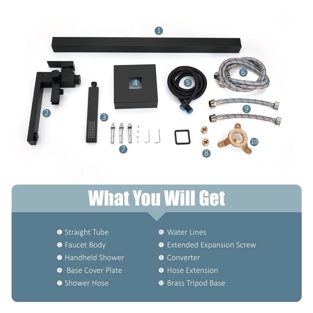 Store category Sign Up Now ! You may also like Product Description Bullet Points: Matte Black Finish: Secure your freestanding bathtub faucet with a solid brass tripod base and expansion screws to prevent wobbling. Its rust-proof and durable matte black surface is resistant against fingerprints, water stains, and easy to clean for long-lasting use. Enhance Your Spa Experience: Upgrade your bathroom with our Freestanding Bathtub Faucet and enjoy the perfect blend of a stylish, modern design. Featuring smooth lines and curves, this faucet features a simple and elegant style that's suitable for any decoration style, giving your bathroom a luxurious feel that's sure to impress. Single-Handle Design: Revel in the luxury of a spa-like experience with our freestanding faucet, featuring a diverter knob that seamlessly transitions from a soothing bath stream to a dynamic handheld showerhead; its single-handle design allows for precise temperature and flow control. Simplified Upkeep: Our Freestanding Bathtub Faucet provides a high-pressure shower head and hose for swift, easy rinsing. Perfect for tub or post-shower rinses, the ultra-flexible hose allows convenient mobility to quickly rinse away substances on skin surfaces. Efficient Setup: Simplify your bathroom upgrade with our freestanding bathtub faucet. Floor integration and complete installation hardware save you valuable time and effort, no professional assistance necessary. Description: This Free Standing Tub Faucet is a perfect addition to any bathroom. Designed to be resistant to fingerprints and water stains for easy cleaning, it is both convenient and time-saving. With easy control of water temperature and flow rate, and an easy reach and mobility feature, this faucet helps make your bath time experience fuss-free. Specification: Color: black Material: brass+stainless steel Finish Type: Matte Black Finish Product List: 1*main faucet body 1*straight tube 1*hand shower 1*shower hose 2*water supply hose 1*cover 1*installation accessories 1*instruction manual Notes: 1. Due to the different monitor and light effects, the actual color of the item might be slightly different from the color which is showed in the pictures. 2. Please forgive a slight measuring deviation due to manual measurement. Payment Delivery details Terms of sales About us Feedback & DSRs Payment Before you palce an order, please kindly make sure that you have a paypal account. We accept PAYPAL payment only. Payment should be completed within 2 days after auction closed, or unpaid dispute will be filed for an closing auction. An unpaid case will be filled after 4 days. Delivery details We ship to your eBay address. Each package will be shipped to US by UPS Regular Parcel with tracking number. Please check your shipping address carefully before checkout, it can't be changed if order completed. All items will be shipped within 1-2 business day upon receipt of payment.Orders placed on weekend will be shipped within 3 days. If you do not receive your item in 7-10 business days.please contact us immediately for further assistance. We will be responsible for any damages or losses incurred in the shipping process. About us We maintain high standards of excellence FIVE STAR and strive for 100% customer satisfaction! Positive Feedback is very important to us. We hope that you contact us immediately Before you give us neutral or negative feedback, so that we can satisfactorily address your concerns. We promise to offer the lowest price and high quality produce. Our working time: From Monday to Friday(9:30 am to 18:00pm), we don't working on holidays ,hope you can understand and know that , thank you. Please always talk to us via ebay Message. We appreciate your business and look forward to growing our e-Bay sales with satisfied customers. Feedback Contact us If you have any questions, please feel free to contact with us by ebay Message during our business hours ( 9:30a.m. to 5:30 p.m.), or email us through eBay, we will try our best to help you to resolve it. For any presale or after-sale questions,please do feel free to email us! Due to the time difference, each email will be replied within 1 working day,and weekend will be delayed a bit. Feedback