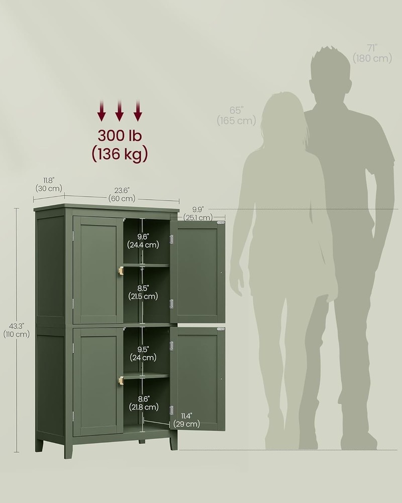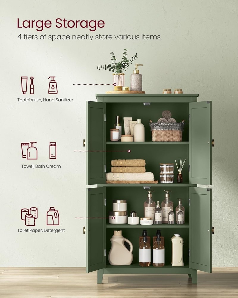 About This Item Ample Storage Space Designed with both an upper and lower cabinet, this freestanding storage unit offers generous room for organizing hair dryers, towels, cosmetics, shower essentials, and other household items, helping keep your space neat and clutter-free. Adjustable & Flexible Organization Each cabinet includes an adjustable shelf with five height positions , allowing you to customize the interior layout to accommodate items of different sizes with ease. Durable Construction with Elegant Style Made from sturdy MDF and particleboard, this storage cabinet is built for long-lasting use. Decorative panel detailing adds a refined touch, making it a stylish addition to bathrooms, entryways, or other living spaces. An included anti-tip kit enhances overall stability. Safety-Focused Design Smooth, rounded corners help reduce the risk of accidental bumps, while the anti-tip hardware allows the cabinet to be securely anchored to the wall for added peace of mind. Easy & Stress-Free Assembly Clearly labeled parts and simple, step-by-step instructions make assembly quick and straightforward, so you can enjoy your new storage solution without hassle.