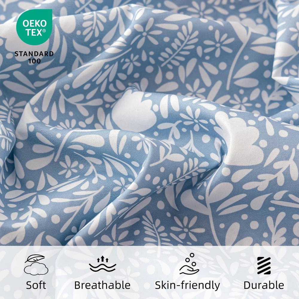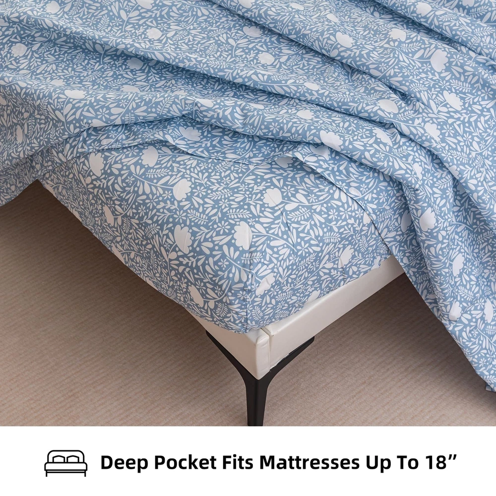 PREMIUM FABRIC: queen size bed sheets set is made of high-density 100% microfiber. The queen sheet set is printed with beautiful floral patterns, allowing you to say goodbye to boring solid colors and bring elegance to your bedroom. When bed sheets meet flowers, brings you your own romance. SIZE DIMENSIONS: 4 pieces queen bed sheet set includes 1 flat sheet (90"x102"),1 fitted sheet (60"x80"x18") and 2 pillowcases (20"x30"). High-quality printing technology and product enhanced craftsmanship details, the floral queen sheets will not pill or fade. Just one set can bring you a luxurious sleeping experience. DEEP POCKET: The queen sheets deep pocket fits 18" deep mattresses. This fitted sheet is designed with a reinforced, stretchable elastic band all the way around the edge. This design helps the fitted sheet fit perfectly on your mattress, preventing it from sliding off the mattress and moving around while you sleep. SOFT & BREATHABLE: The finest quality microfiber yarn is hydro-brushed and pre-washed for an unbelievable soft feel for queen size sheet set. Comfortable and breathable material keeps you cool in the summer and warm in the winter. The sheet set queen size can be used in all seasons. When you lie down, it's like sleeping in the arms of flowers. EASY CARE: Please wash the queen size sheets deep pocket in cold water, gentle cycle, then tumble dry on low heat when needed. Our microfiber bedding are OEKO-TEX Certified. It is a worldwide independent testing and certification system that can ensure our bed sheet set follows strict manufacturing guidelines. takes every product seriously.