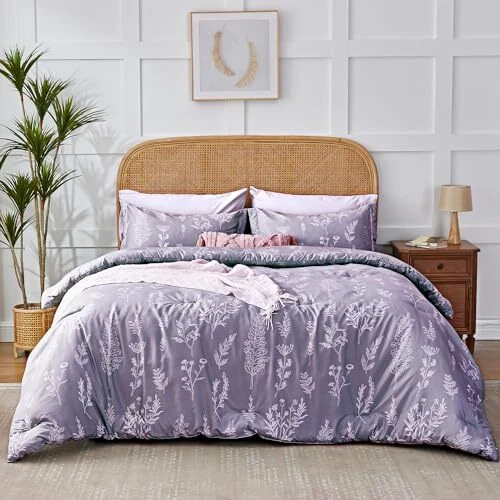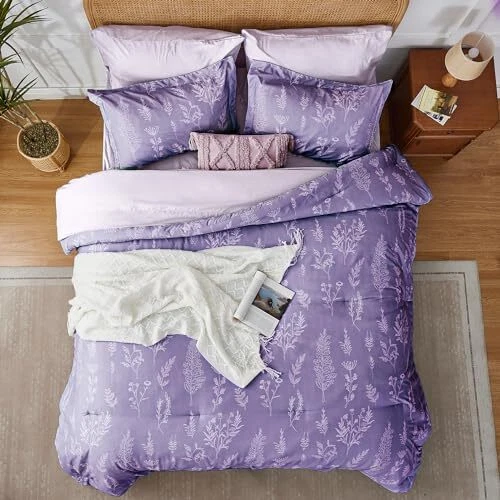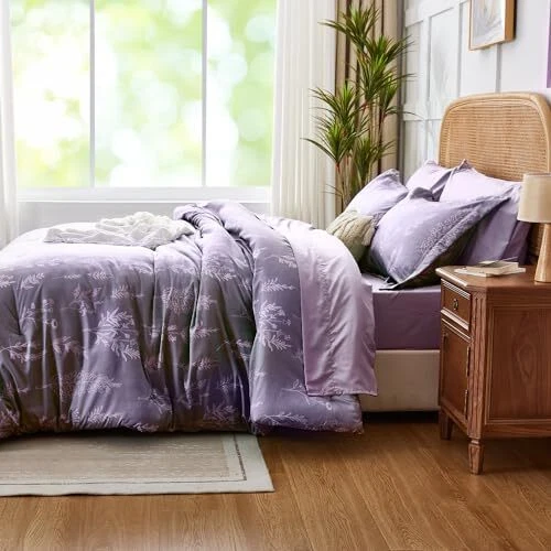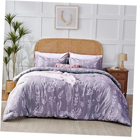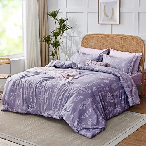 Floral Comforter Set Cute Flower Bed in a Bag Boho 7 Pieces, Queen Lavender