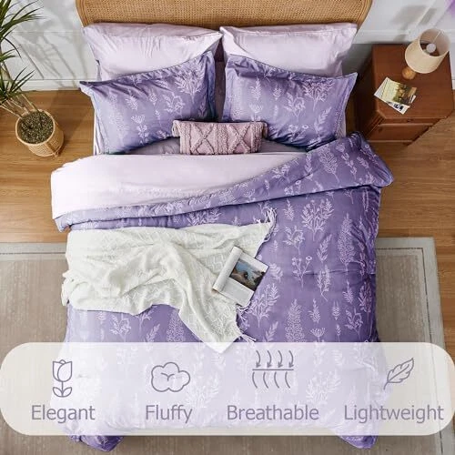 Type: Does Not Apply EAN: Does Not Apply Fabric Type: 100% Polyester Style: Modern Seasons: All, Winter, Summer, Spring Item Length: 16.02 Material: Polyester Item Weight: 7.67 pounds Package Dimensions: 16.02 x 12.48 x 7.17 inches Brand: Does Not Apply Date First Available: May 9, 2024 Number of Pieces: 7 Pattern: Floral Product Care Instructions: Machine Wash, Do Not Bleach MPN: Does Not Apply Theme: Modern Manufacturer: Does Not Apply Color: Lavender Size: Queen Item Width: 12.48 UPC: Does Not Apply Country of Origin: China gtin13: Does Not Apply Included Components: 1 Comforter (88" x 88"), 2 Pillowcases (20" x 30"), 2 Pillow Sham Item model number: Floral Bed-in-a-bag 7 Pieces Item Height: 7.17