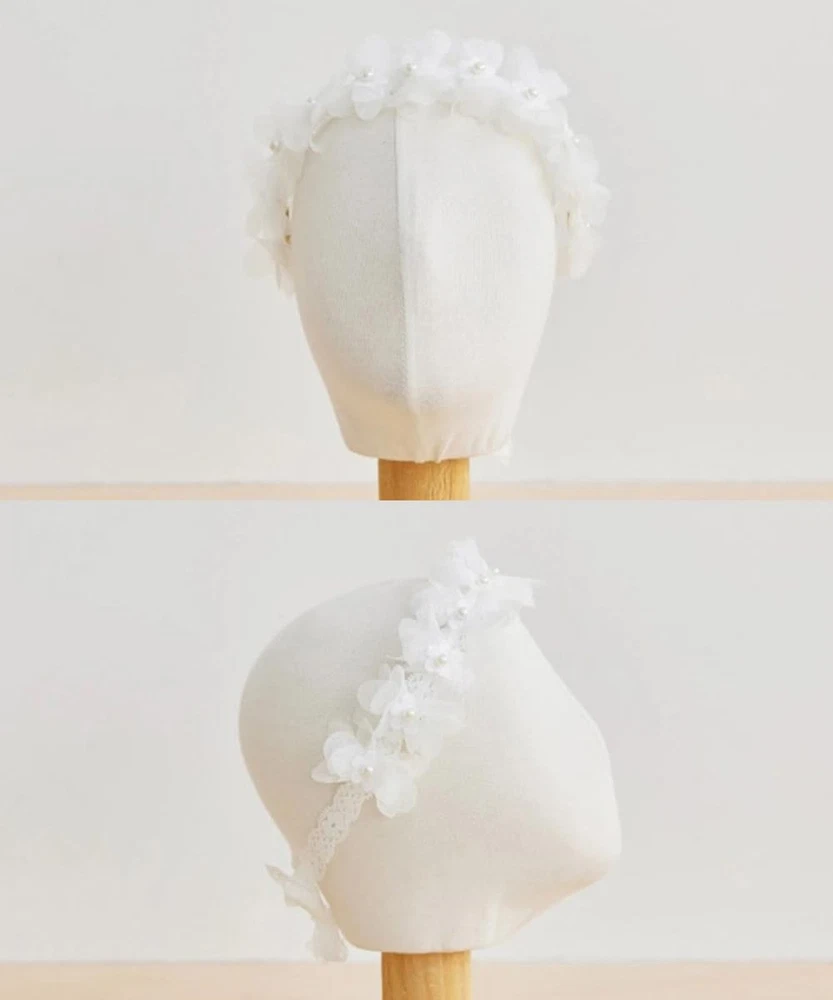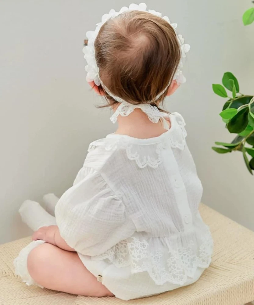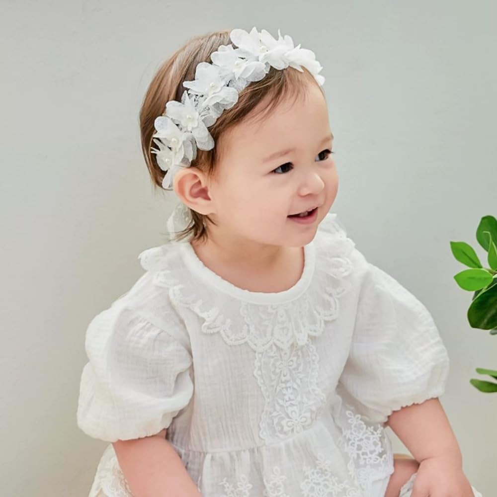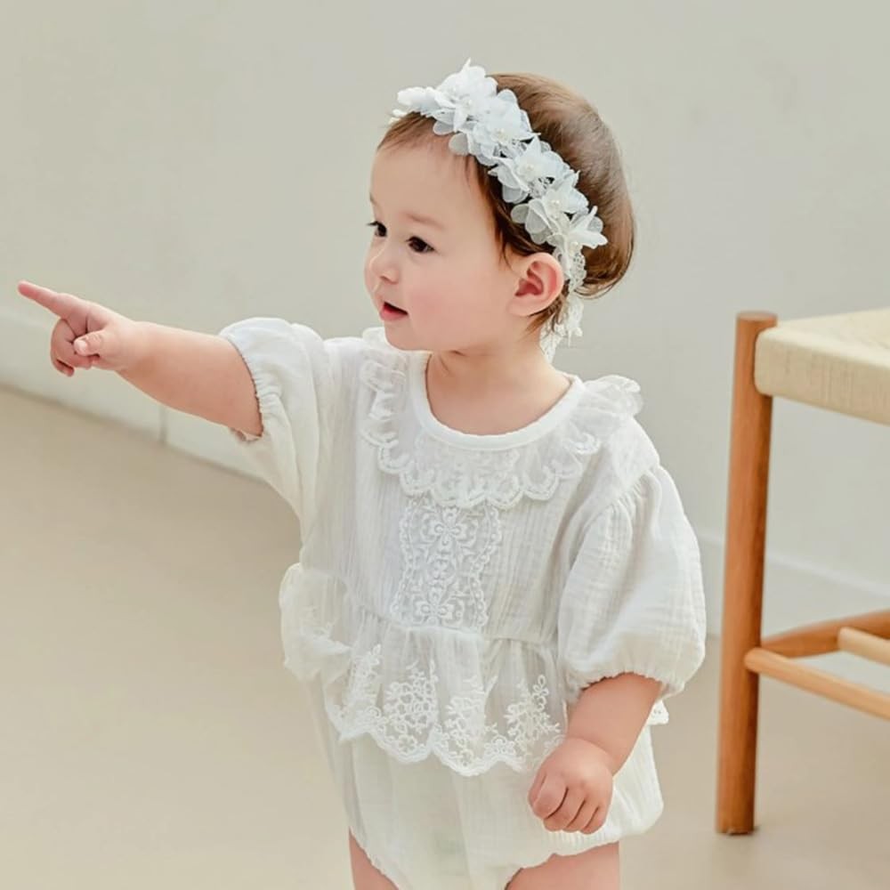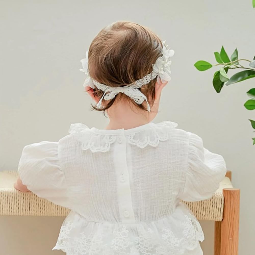 White Lace Christening Headband for Baby Girl Soft Cotton Flower Baptism Todd...