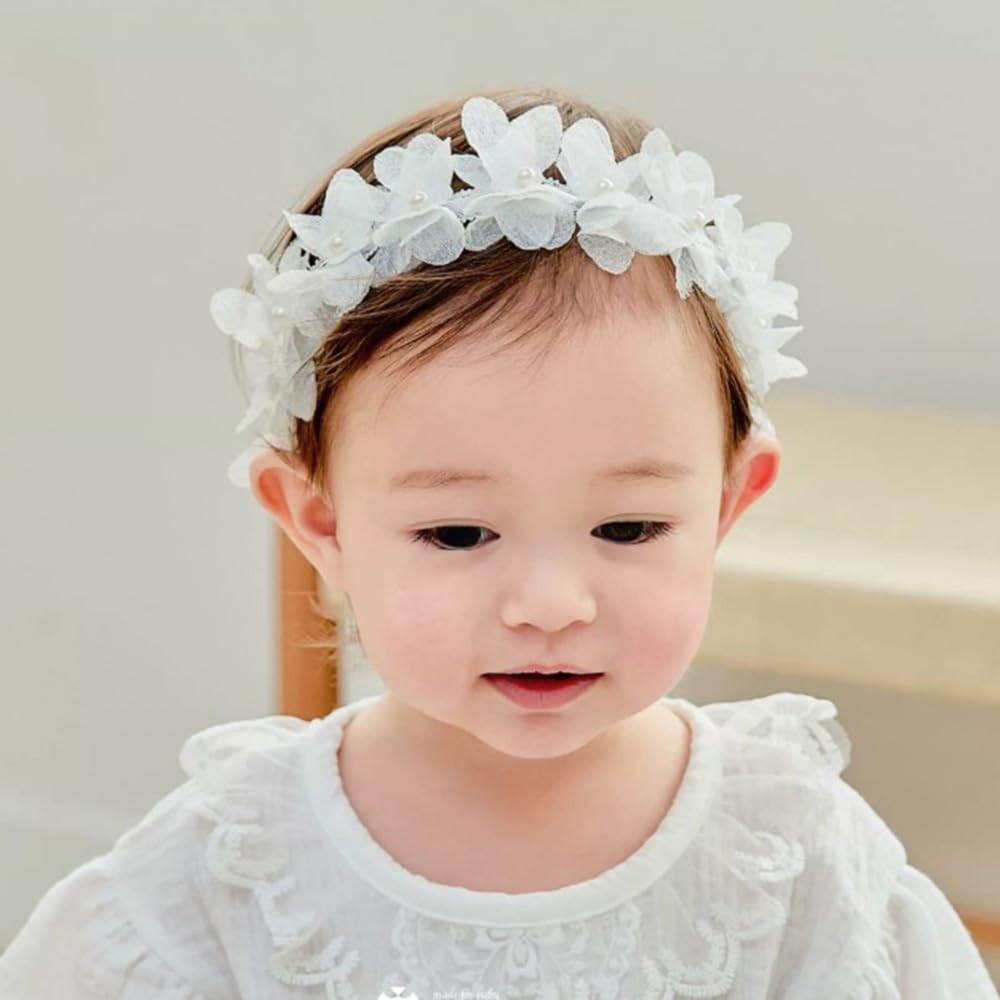 This darling baby girl lace floral headband is perfect for any occasion. The soft elastic fabric and wide design make it comfortable enough for little ones to wear all day. Delicate pink and white floral embroidery adds feminine charm without being overly frilly. As a hair accessory, it helps keep baby's hair out of her eyes while looking absolutely precious. The stretchy fit adjusts easily to growing heads from newborn through toddler years. It also works as a gentle head wrap, protecting baby's delicate head without leaving marks. Both fashionable and functional, this sweet hairband is a thoughtful gift for baby showers, photos, outings, and everyday use. Hand washing is recommended. Soft and Comfortable: Made of soft stretchy lace fabric and elastic material for a comfortable fit that's gentle on baby's delicate head and hair Adorable Style: Beautiful floral lace design adds a touch of feminine charm to any outfit with its pretty pink bow and flowers Universal Size: One size fits most with an adjustable elastic band that stretches to fit head circumferences up to 21 inches Keeps Hair Back: Perfect for keeping baby's hair out of their face or as a hair accessory for photos without causing irritation Safe and Durable: Hypoallergenic materials and secure elastic band make this a long-lasting hair piece that parents can feel good about baby wearing