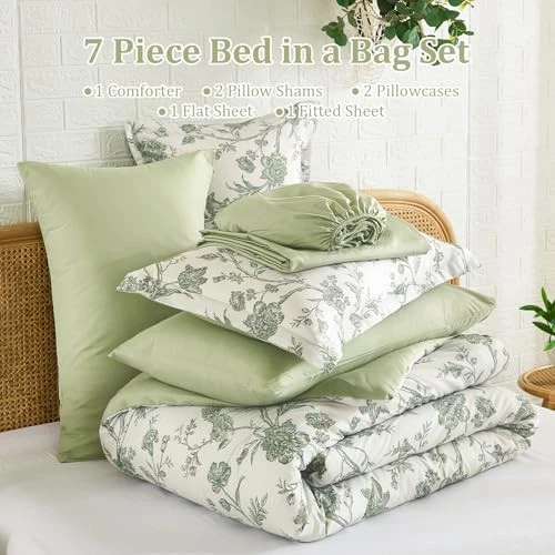 Seasons: All Country of Origin: China Style: Country Rustic Size: Queen Color: Sage Green Package Dimensions: 14.92 x 11.81 x 5.43 inches gtin13: Does Not Apply UPC: Does Not Apply Brand: Does Not Apply Fabric Type: Microfiber Item Weight: 7.85 pounds MPN: Does Not Apply Theme: Floral Number of Pieces: 7 Pattern: Floral Manufacturer: Does Not Apply Product Care Instructions: Machine Wash Item Height: 5.43 EAN: Does Not Apply Material: Polyester Item Width: 11.81 Type: Does Not Apply Date First Available: December 14, 2024 Included Components: 1 Comforter,1 Flat Sheet,1 Fitted Sheet,2 Pillow Shams,2 Pillowca Item Length: 14.92