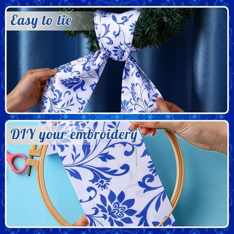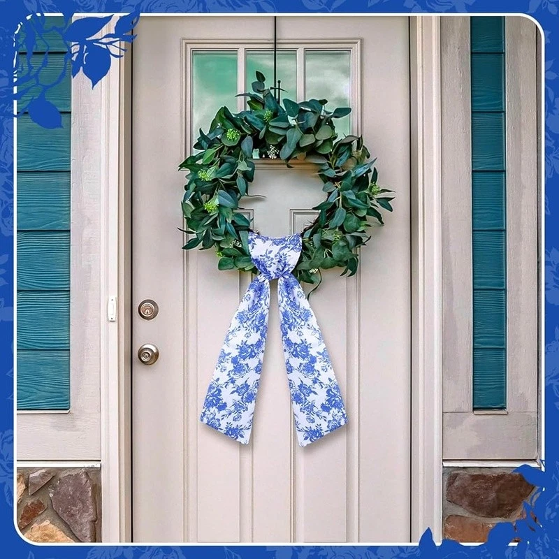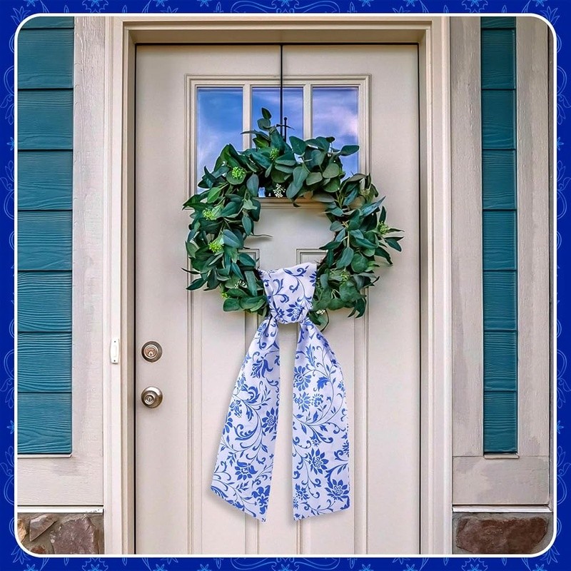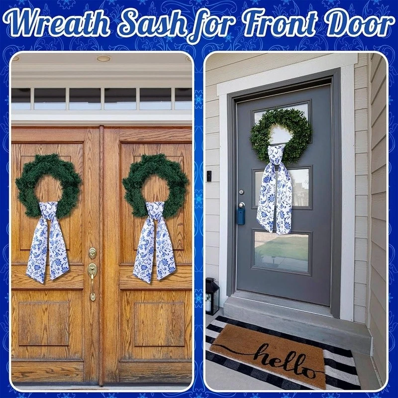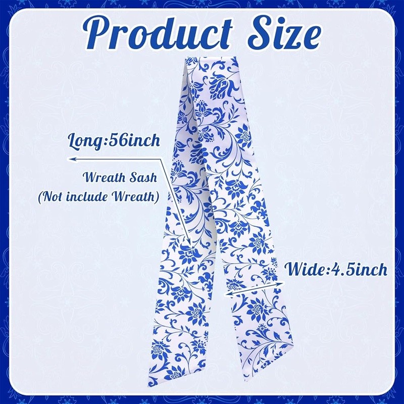 About this item Flexible Seasonal Decor: this beautiful sash for wreath front door, made from sturdy polyester, is ideal for many seasons, with its adaptable floral color, it effortlessly fits into your holiday decoration, ceremony decorations, or daily use, fit for windows, doors, tables and other places, transform your wreath into a gorgeous piece of home decoration, please note that the product does not include a wreath Proper Sizing for Wreath: no more struggling to find the right size wreath sash for your wreath, our floral sash measures approximately 4.5 inches in width and a flat length of about 56 inches, making it ideal for wrapping around different sizes of wreaths, hang it so that one side is longer than the other, then loosely tie a knot and adjust; Its generous length can cover a broad spectrum of wreath sizes or be applied for other decorative purposes DIY Friendly Sash: unleash your creativity with our versatile wreath sash; Available in a clean, crisp floral, it sets the practical fabric for DIY, embroidery or retain some original natural atmospheres, adding a personal touch to your wreath or home decoration, this sash provides the scope for creativity, making your home decoration truly memorable and special Quality Polyester Material: each of our wreath decor is made from quality polyester, offering durability and long lasting use; Its sturdy construction ensures that it can withstand the weight of various decorations you may want to add, moreover, the smooth texture of the material enhances aesthetics and ensures easy handling Verde Scene Complement: in addition to home decoration, this holiday wreath decoration sets an elegant feeling for greenery scenarios; The charming floral sash, when draped over plants or garden features, can instantly uplift the aesthetic appeal of many spaces, making it ideal for garden parties, weddings, anniversaries, Christmas or other alfresco events Color: Chinoiserie Material: Polyester Brand: Style: Chinoiserie Item Weight: 2.08 ounces Manufacturer: Number of Items: 1